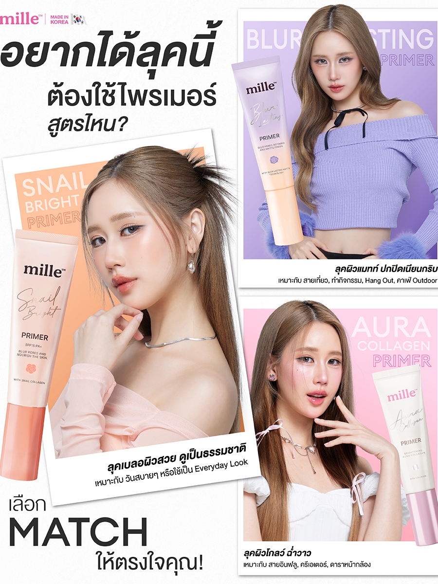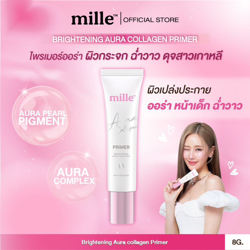 [หลอด] Mille Primer มิลเล่ ไพรเมอร์ 3 สูตร (Snail Bright/ Brightening Aura/ Blur Lasting) 8 กรัม