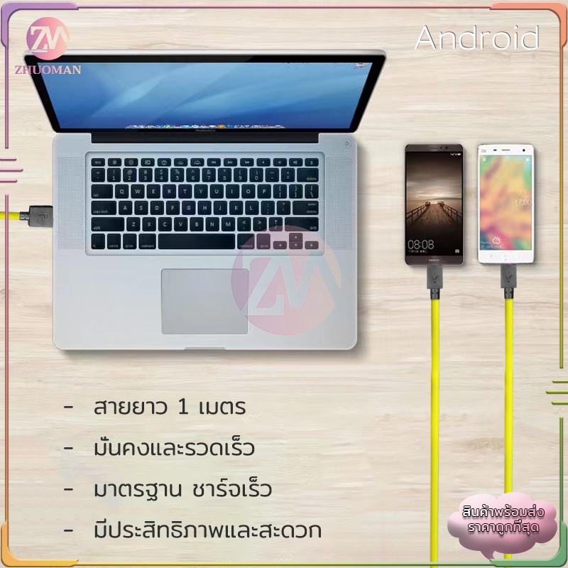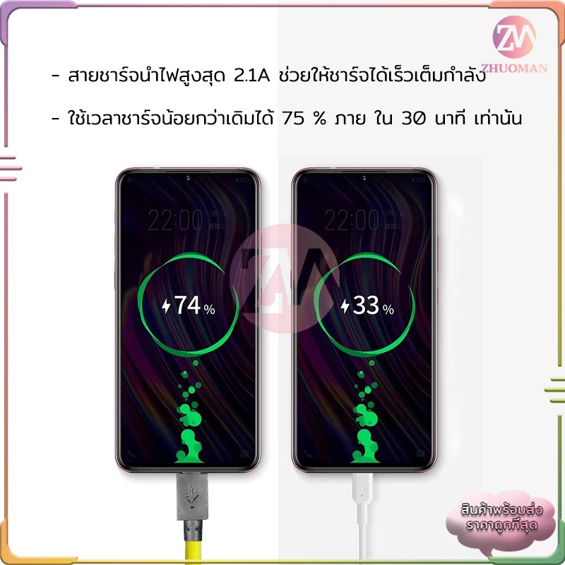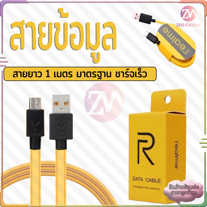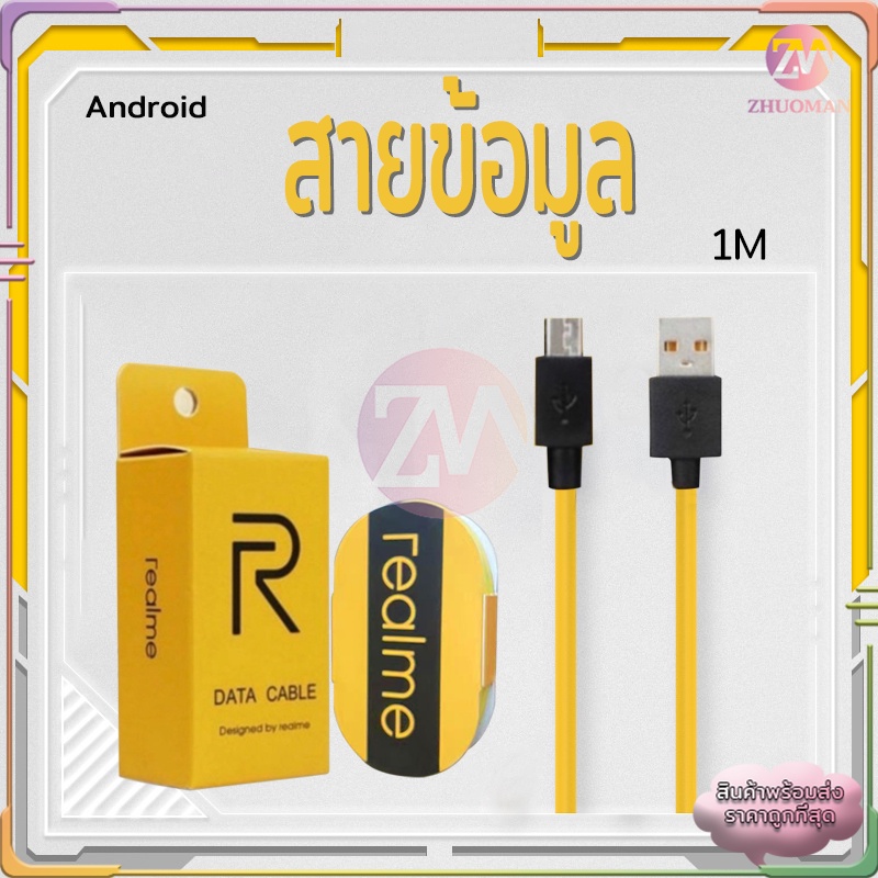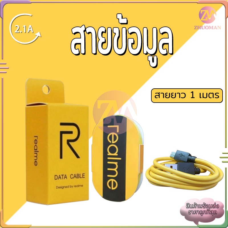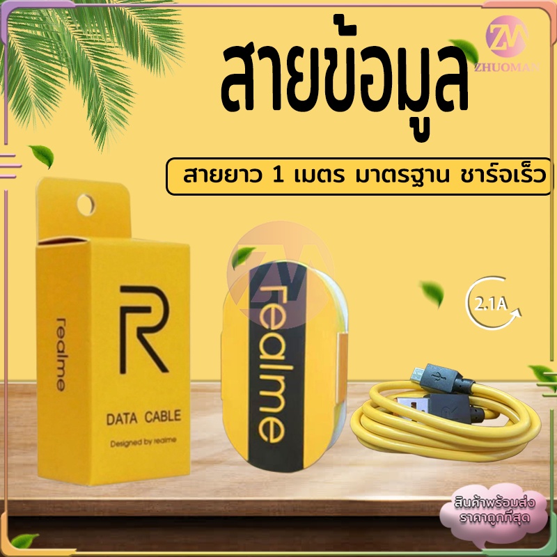 สายชาร์จ realme แท้ สายชาร์จแอนดรอยด์ ชาร์จเร็ว กำลังไฟ2.1A USB สายยาว 1เมตร มาตรฐาน สายชาร์จไว ทนทาน คุณภาพดี