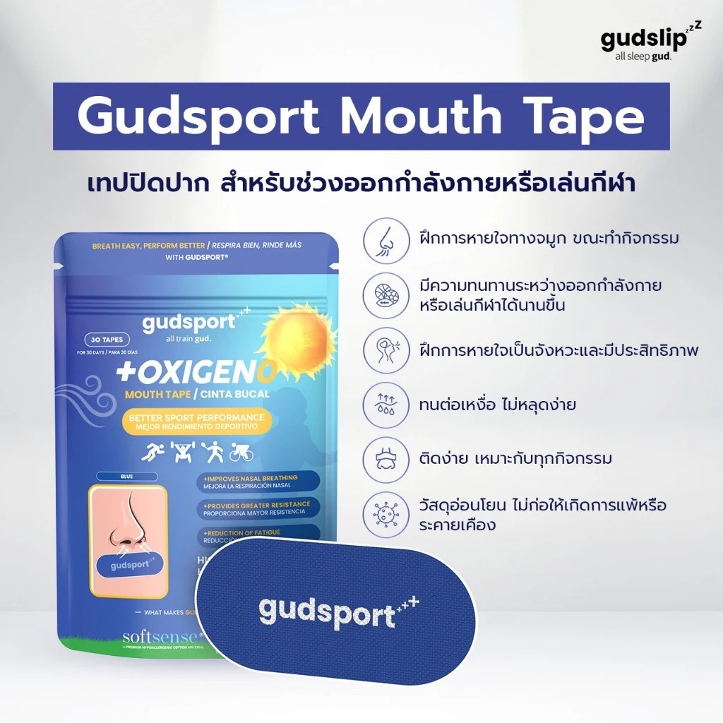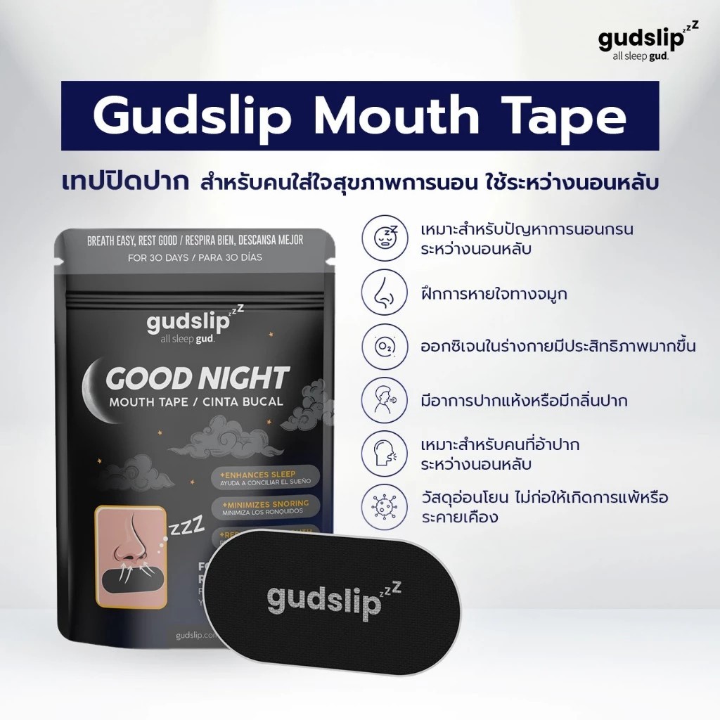 Gudslip Thailand GUDSPORT & GUDSLIP Mouth Tape - 1 ซอง บรรจุ 30 ชิ้น แผ่นปิดปาก ช่วยฝึกการหายใจทางจมูก