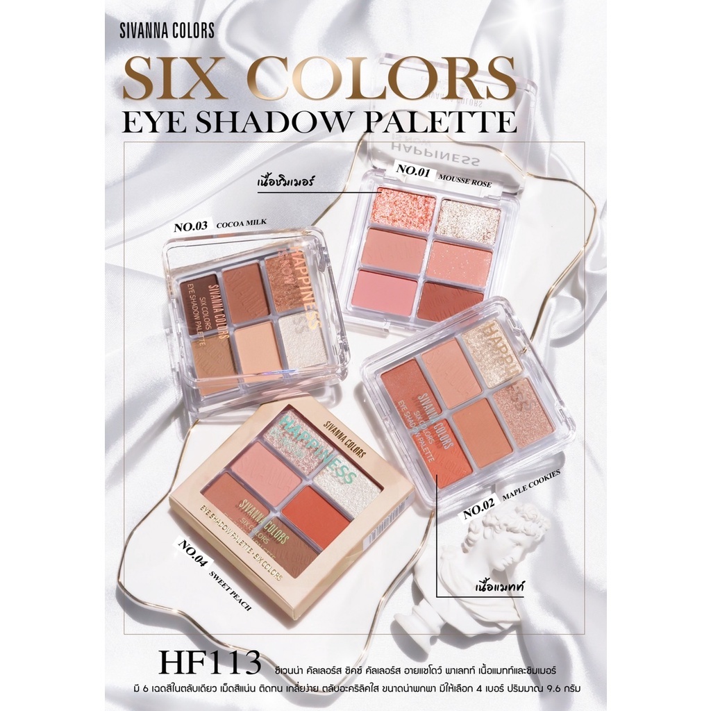 อายแชโดว์ทาตา ซีเวนน่า คัลเลอร์ส Sivanna Colors Six Colors Eye Shadow Palette HF113
