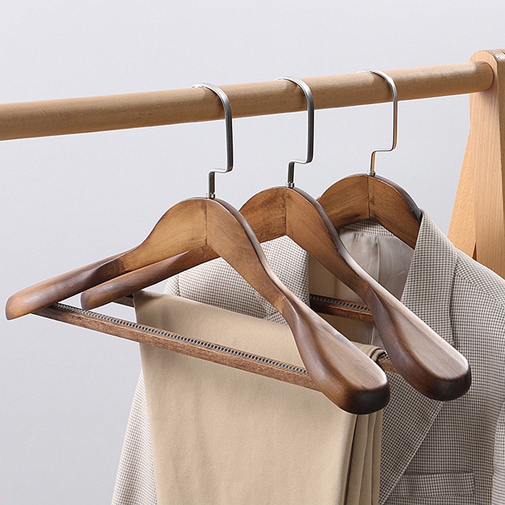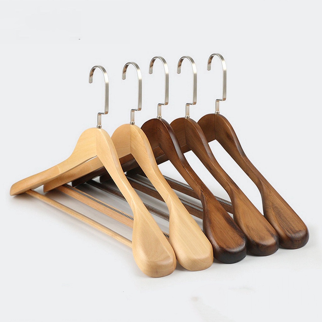 🍒grace Thai🍒 ไม้แขวนเสื้อ ไม้แขวนเสื้อสูท ไม้แท้บ่าใหญ่ มี2สีให้ลือก (1ชิ้น)
