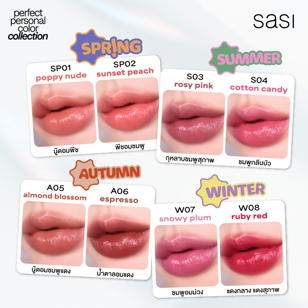 Sasi ศศิ เพอร์เฟกต์ เพอร์ซันนอล คัลเลอร์ กลอส สติ๊ก 3ก. ลิปกลอส เนื้อฉ่ำวาว