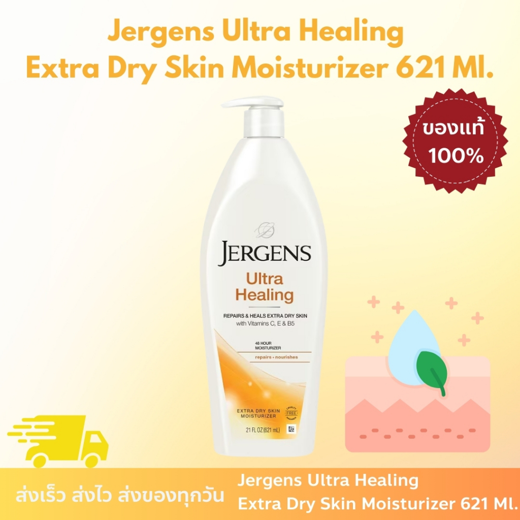 Jergens Ultra Healing Extra Dry Skin Moisturizer 621 ml. เจอร์เกนส์ อัลตร้า ฮีลลิ่ง เอ็กซ์ตร้า ดราย