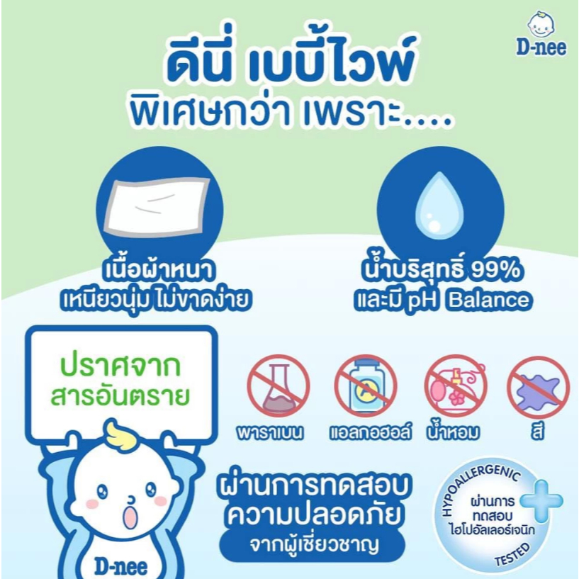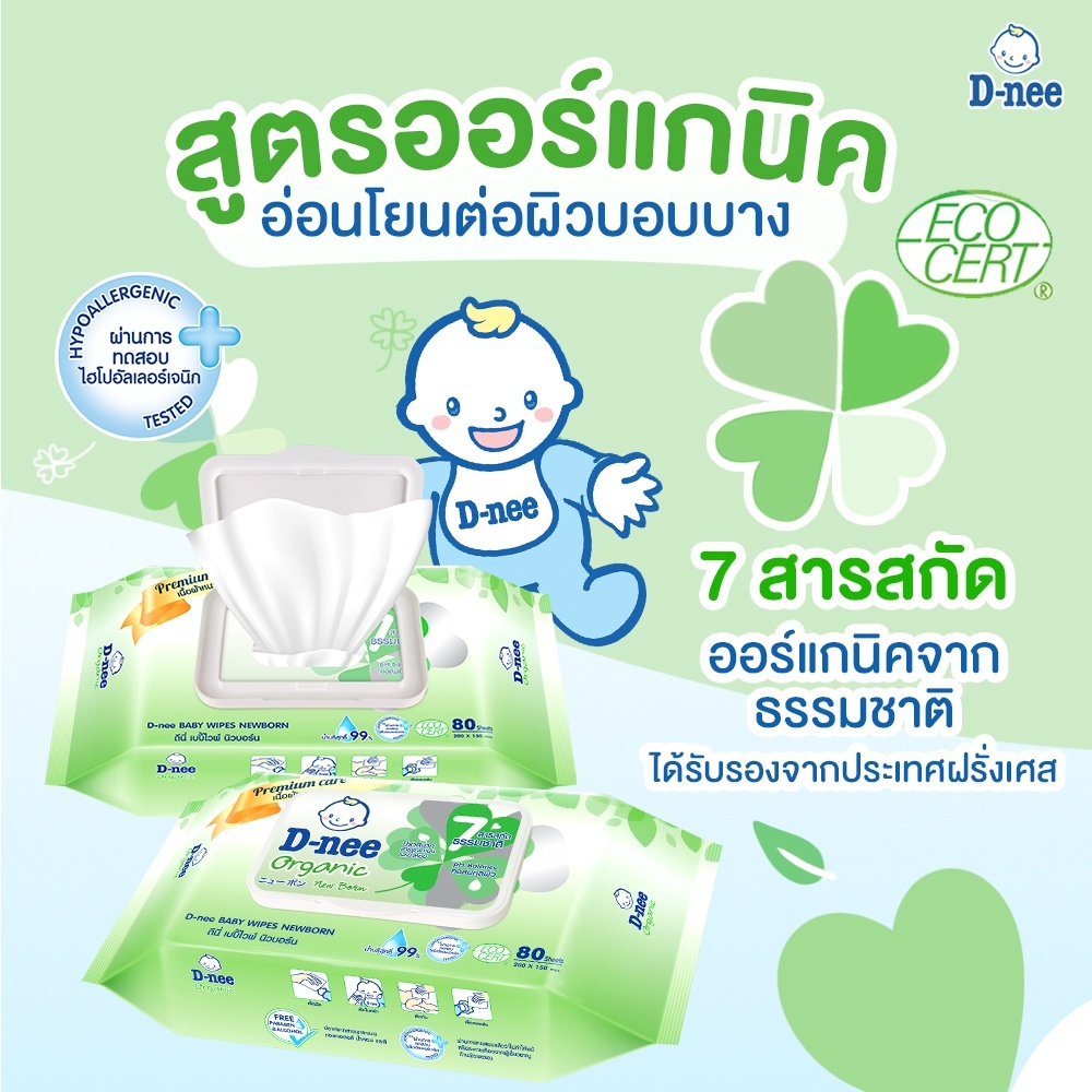 D-nee BABY WIPE NEWBORN ORGANIC ผ้าเช็ดทำความสะอาด สูตรออร์แกนิค สีเขียว (80 แผ่น)