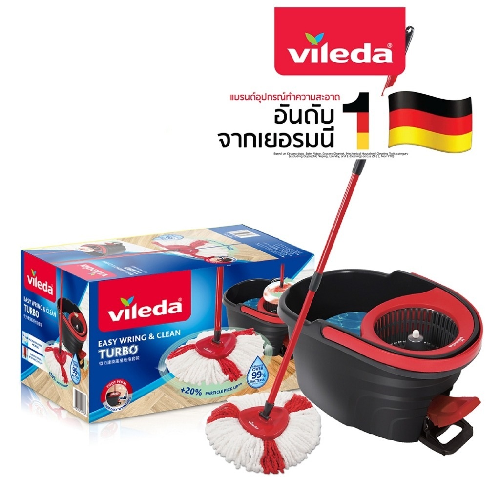 VILEDA ไม้ถูพื้น Easy Wring&Clean Turbo พร้อมหัวม็อบทรงสามเหลี่ยม ผ้าม็อบไมโครไฟเบอร์ รุ่น TSU162214