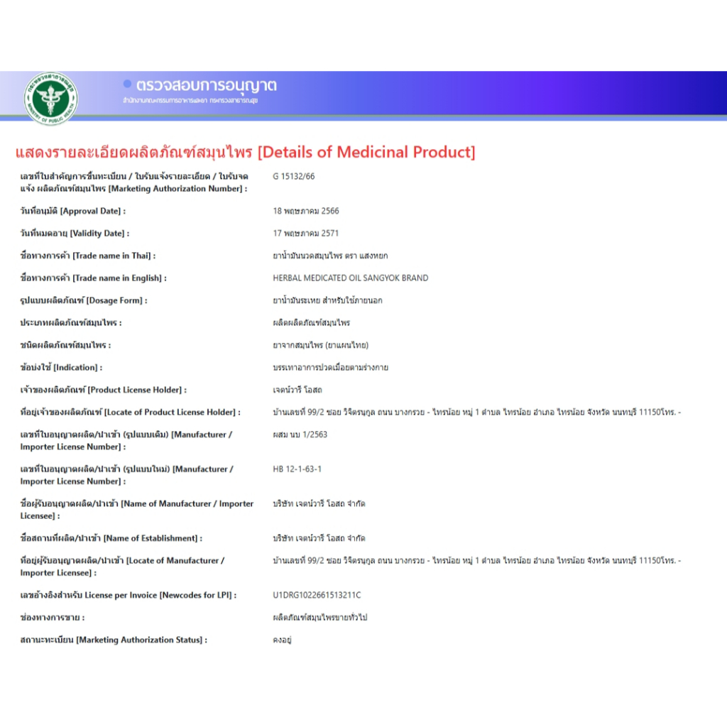 สมุนไพรขายทั่วไป น้ำมันนวด สมุนไพร 25ML. ตราแสงหยก น้ำมันหยก [11637]