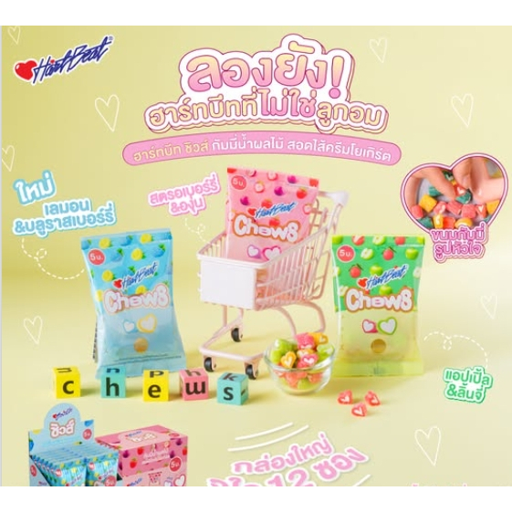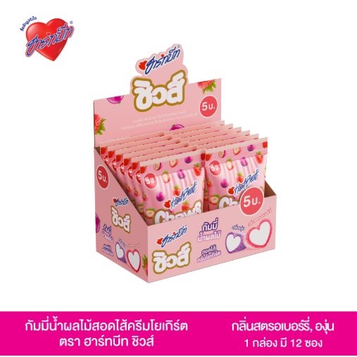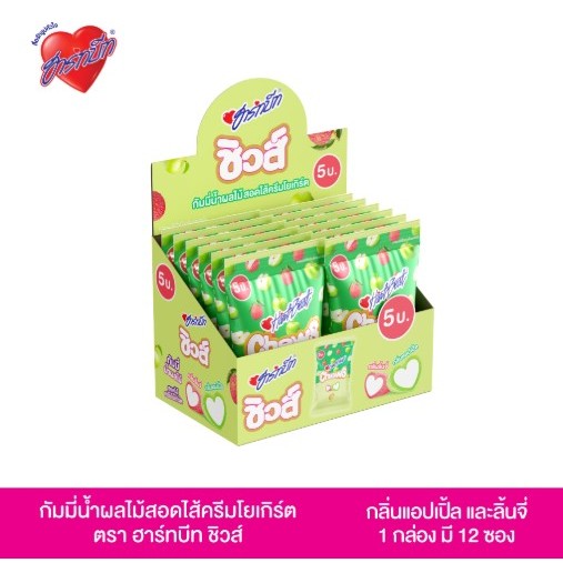 ฮาร์ทบีท ชิวส์ กัมมี่น้ำผลไม้ สอดไส้ครีมโยเกิร์ต ปริมาณ 18 กรัมx12 ซอง*//กล่อง 12 ซอง//*