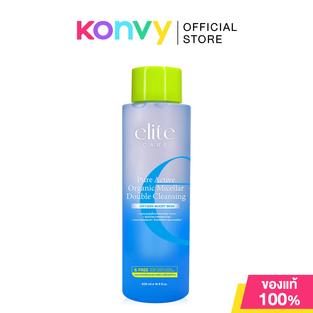Elite Care Pure Active Organic Micellar Double Cleansing 500ml คลีนซิ่งไมเซล่าวอเตอร์ อีลิท แคร์ เช็ดผิวสะอาด.