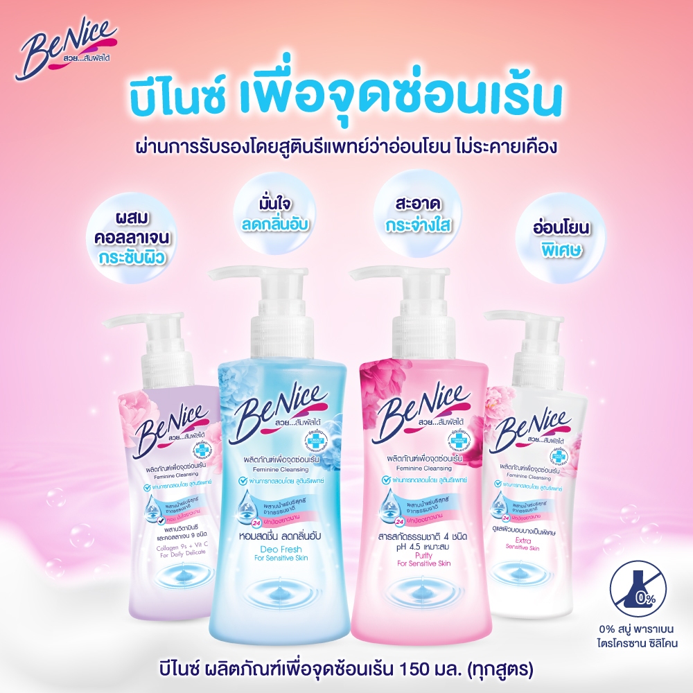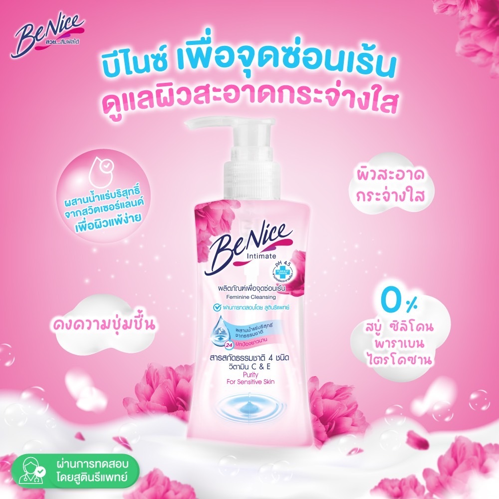 BeNice Feminine Wash Purity For Sensitive Skin 150ml บีไนซ์ เฟมินีน วอช สูตรกระจ่างใสและอ่อนโยน 150มล.