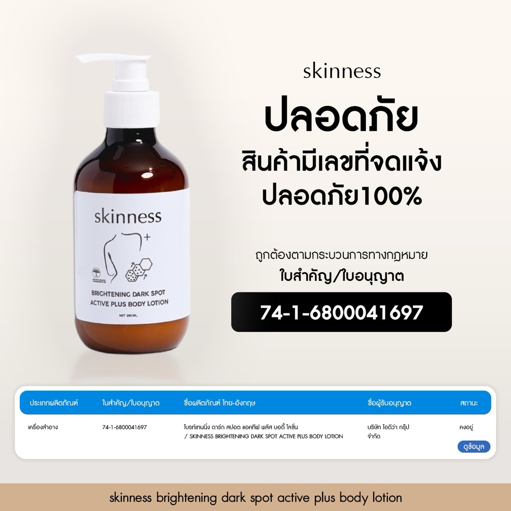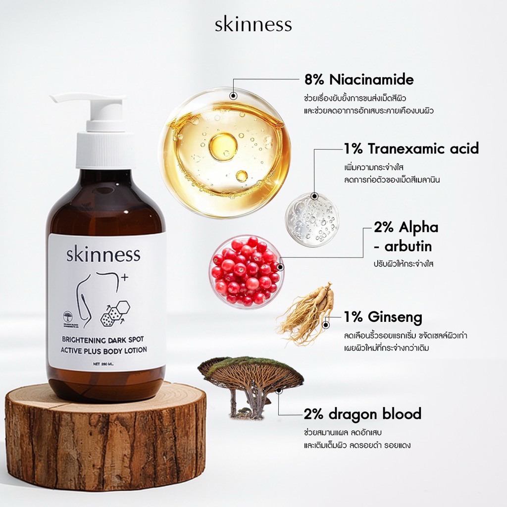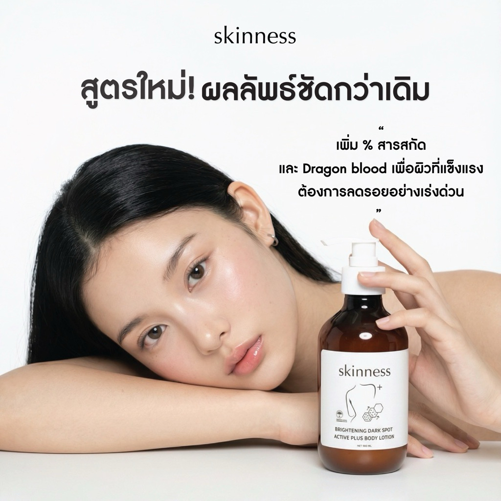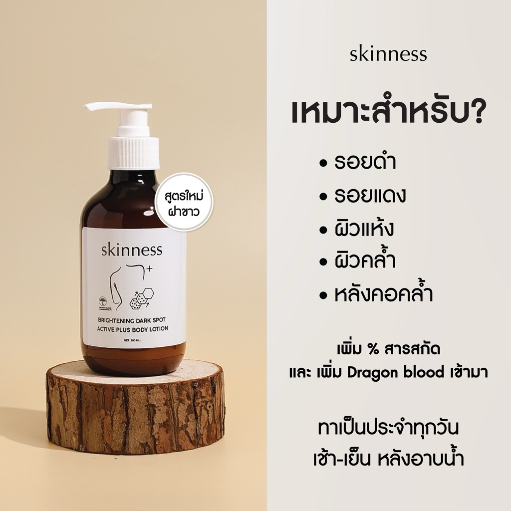 สูตรใหม่! [พร้อมส่งทุกวัน] skinness brightening dark spot active plus body lotion | ครีมลดรอยดำสูตรฝาขาว