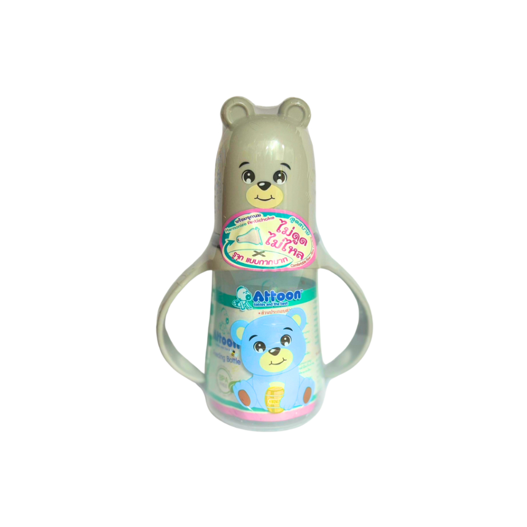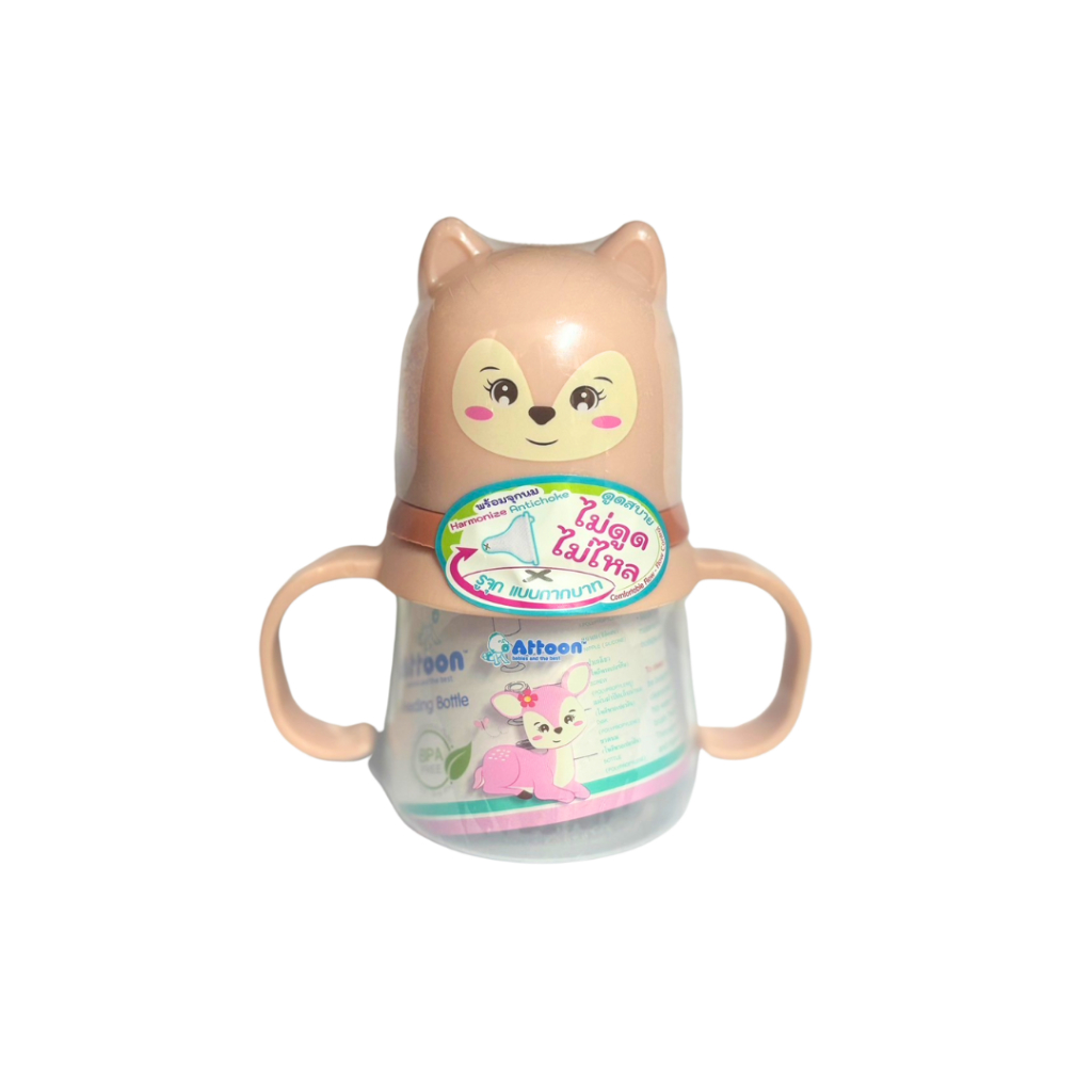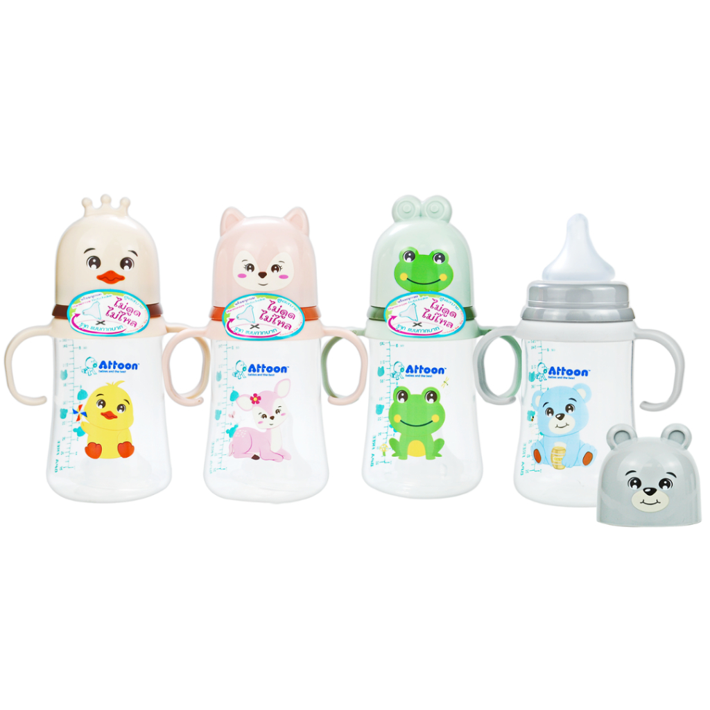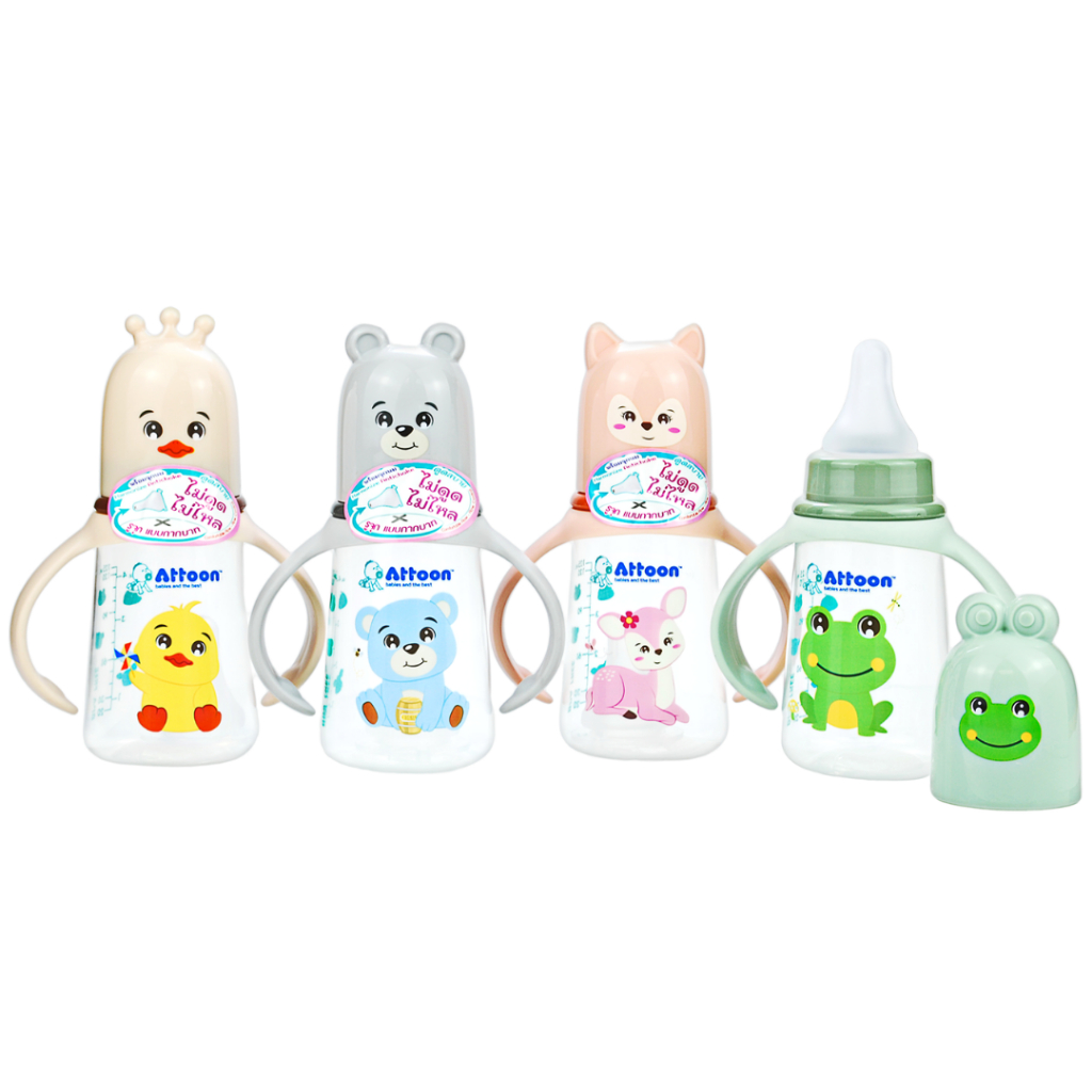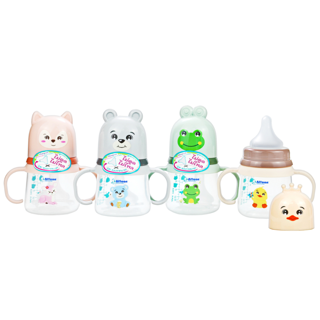 [ไม่ดูดไม่ไหล+แขนจับ] Attoon ขวดนมคอกว้าง ขวดนมคอแคบ พร้อมแขนจับ จุกไม่ดูดไม่ไหล (ขนาด 4/8 ออนซ์) ขวดนม แอทตูน