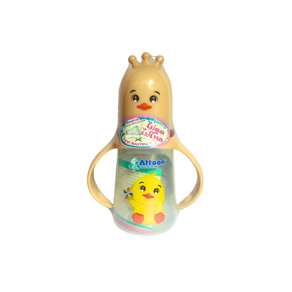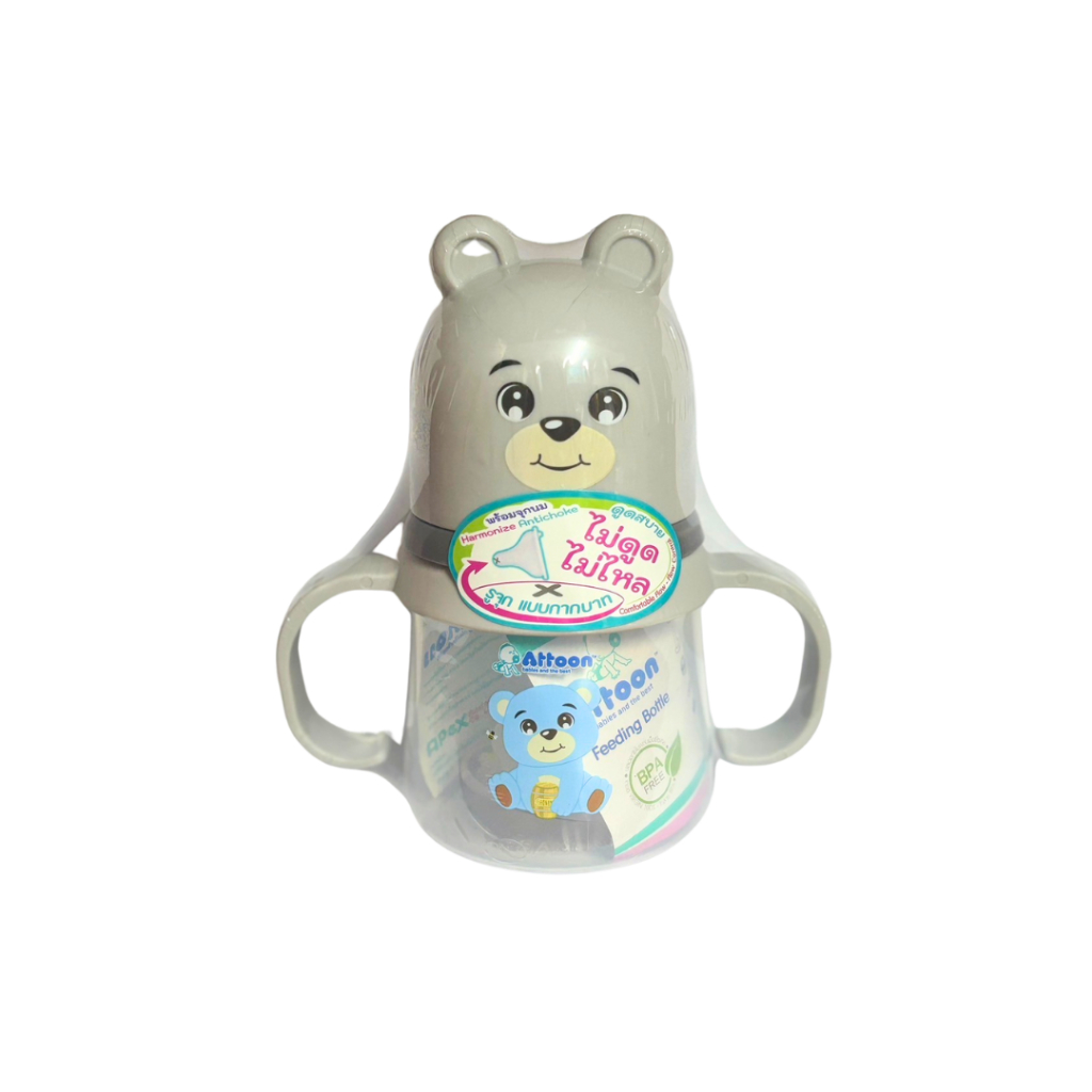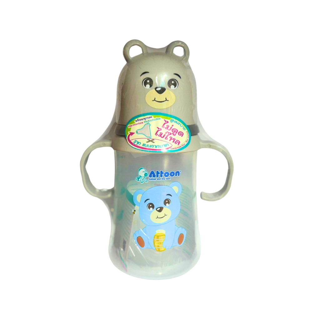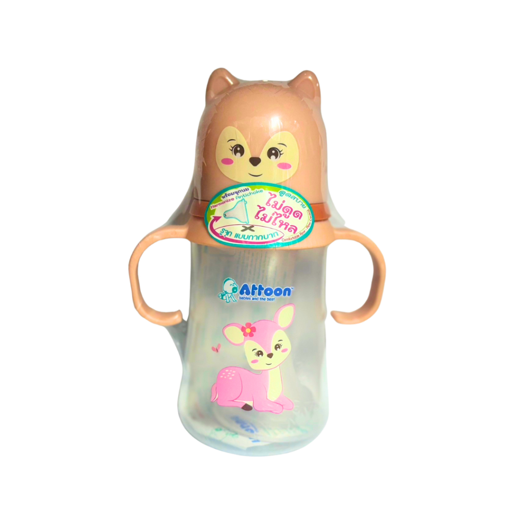[ไม่ดูดไม่ไหล+แขนจับ] Attoon ขวดนมคอกว้าง ขวดนมคอแคบ พร้อมแขนจับ จุกไม่ดูดไม่ไหล (ขนาด 4/8 ออนซ์) ขวดนม แอทตูน