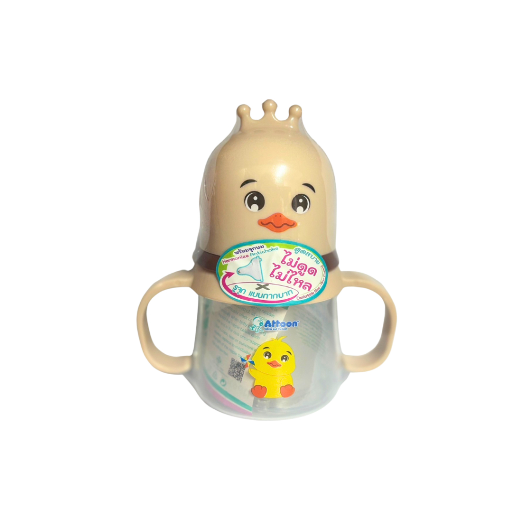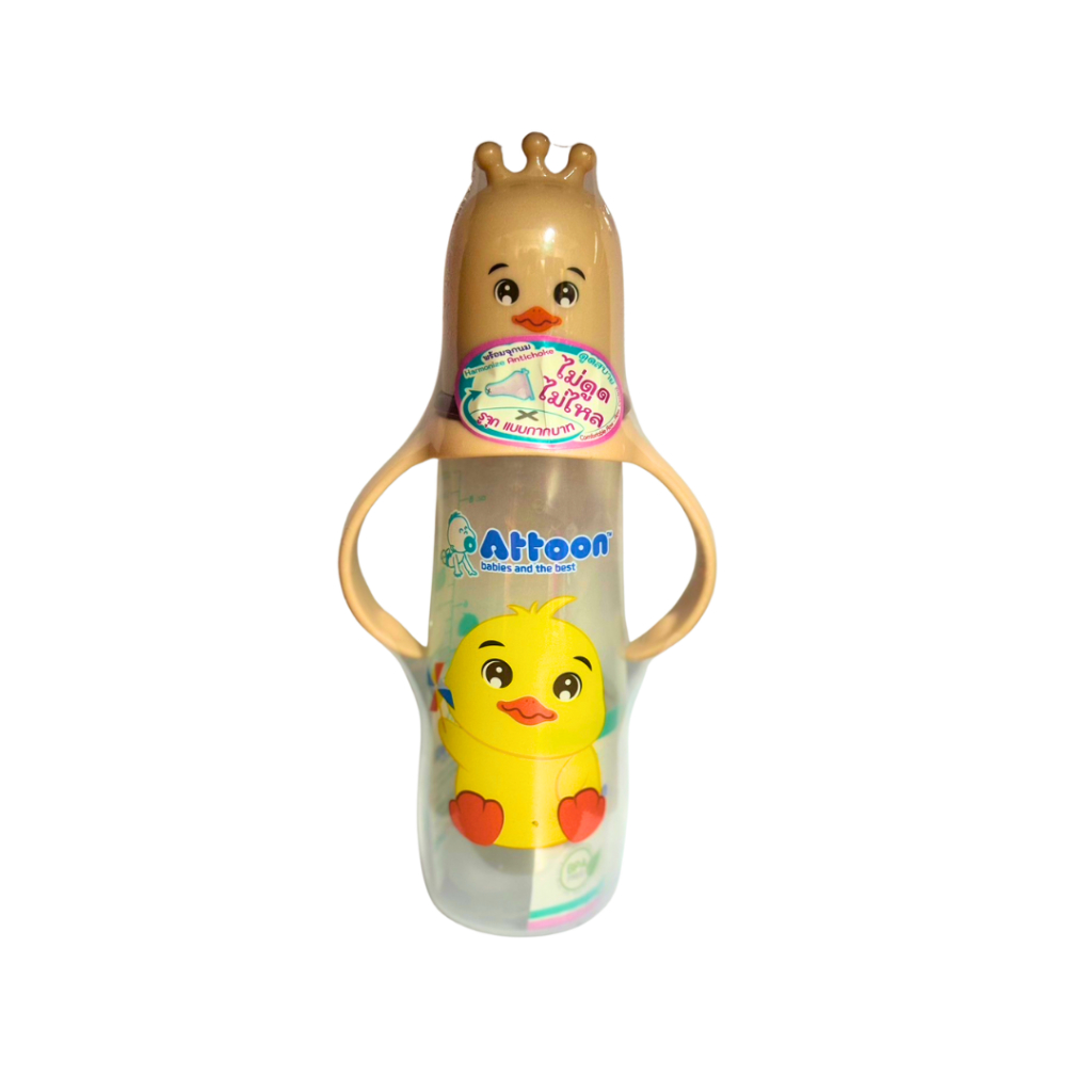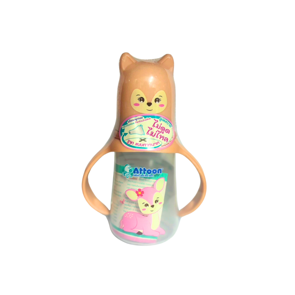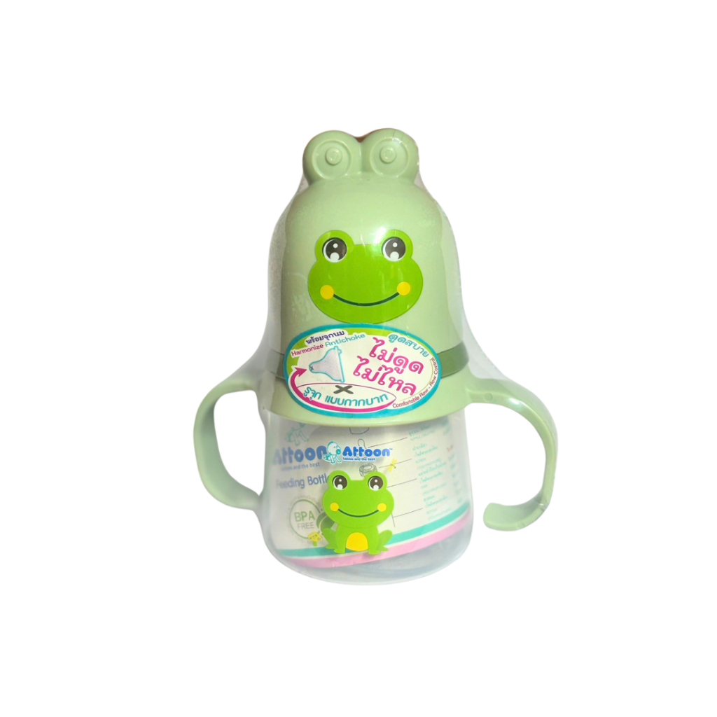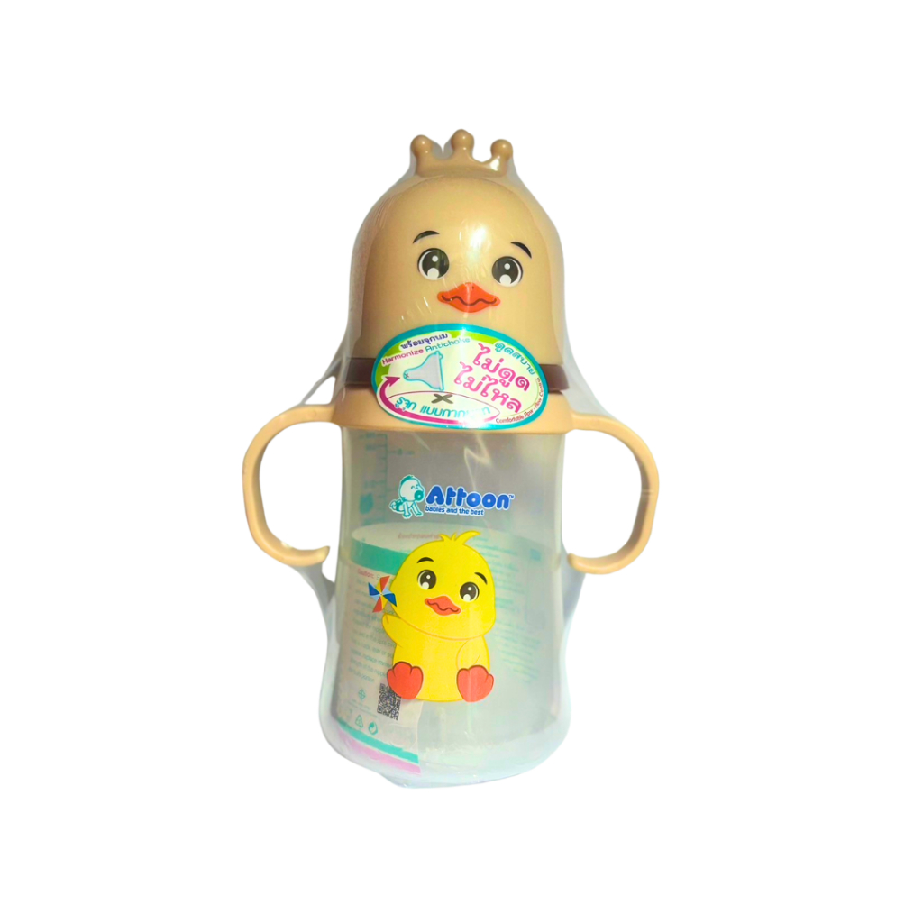 [ไม่ดูดไม่ไหล+แขนจับ] Attoon ขวดนมคอกว้าง ขวดนมคอแคบ พร้อมแขนจับ จุกไม่ดูดไม่ไหล (ขนาด 4/8 ออนซ์) ขวดนม แอทตูน