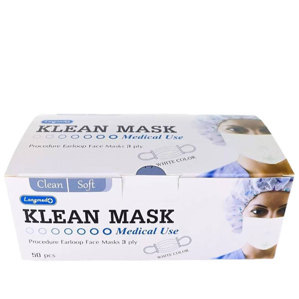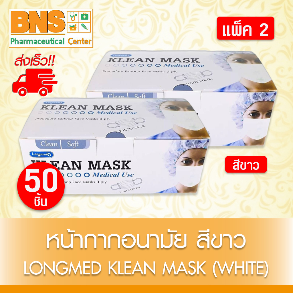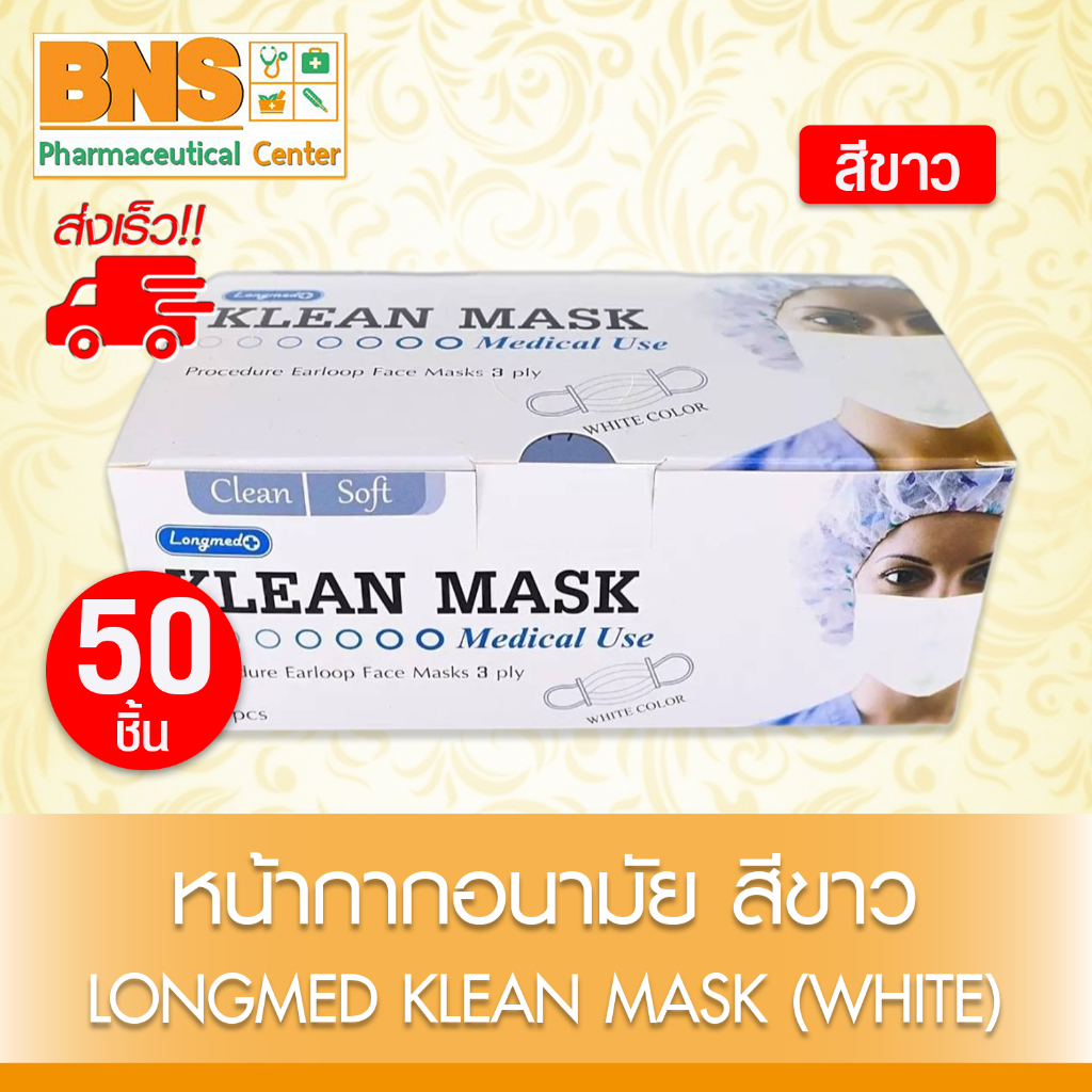ส่งเร็ว !! ( 1 กล่อง 50 ชิ้น ) Klean mask longmed หน้ากาก อนามัย (สีขาว)(สินค้าขายดี)(ถูกที่สุด)