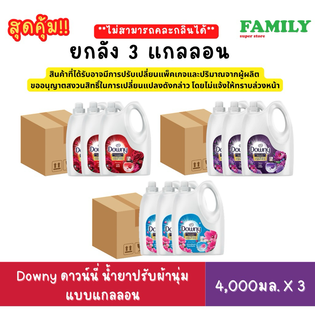 (ยกลัง) Downy ดาวน์นี่ น้ำยาปรับผ้านุ่ม แบบแกลลอน 4000มล. x 3
