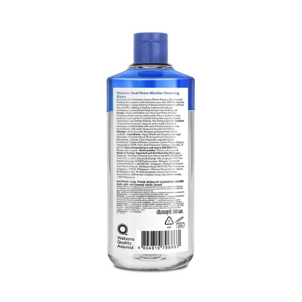 Watsons วัตสัน ดูอัล เฟส ไมเซลล่าร์ คลีนซิ่ง วอเตอร์ 390 มล.