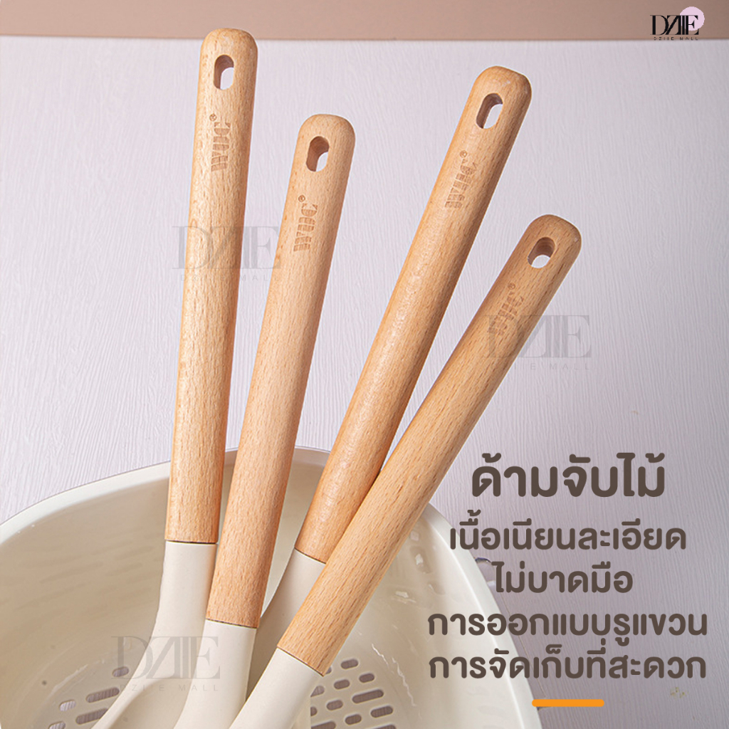 [Sale]WUC Wooden Kitchen Utensils เครื่องครัวด้ามไม้ยาว ซิลิโคน ตะหลิว ทัพพี ชุดเครื่องครัว ที่ตักแกง กระชอน
