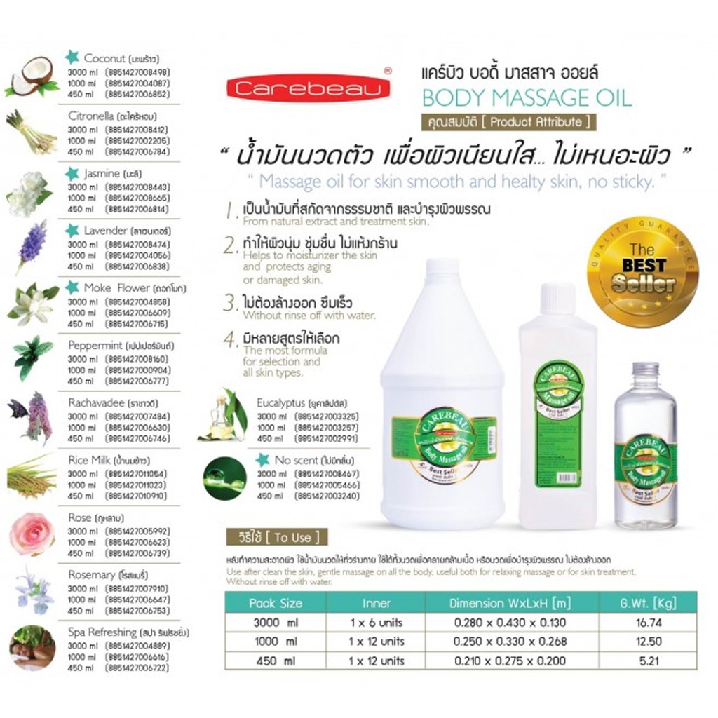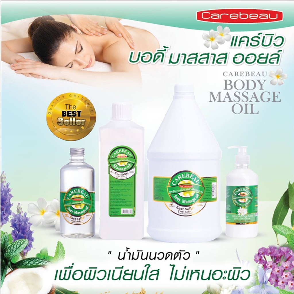 น้ำมันนวดตัว นวดสปา สมุนไพร แคร์บิว Carebeau Body Massage Oil 450 ml.