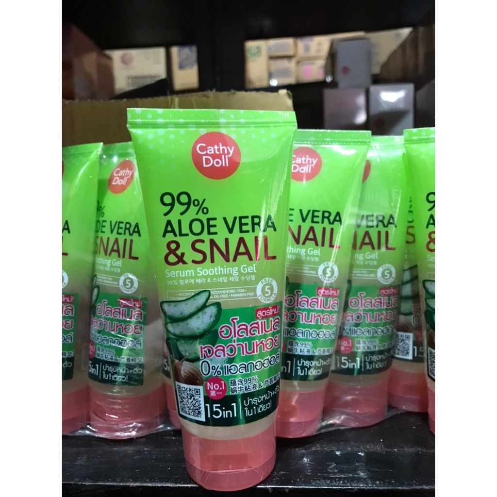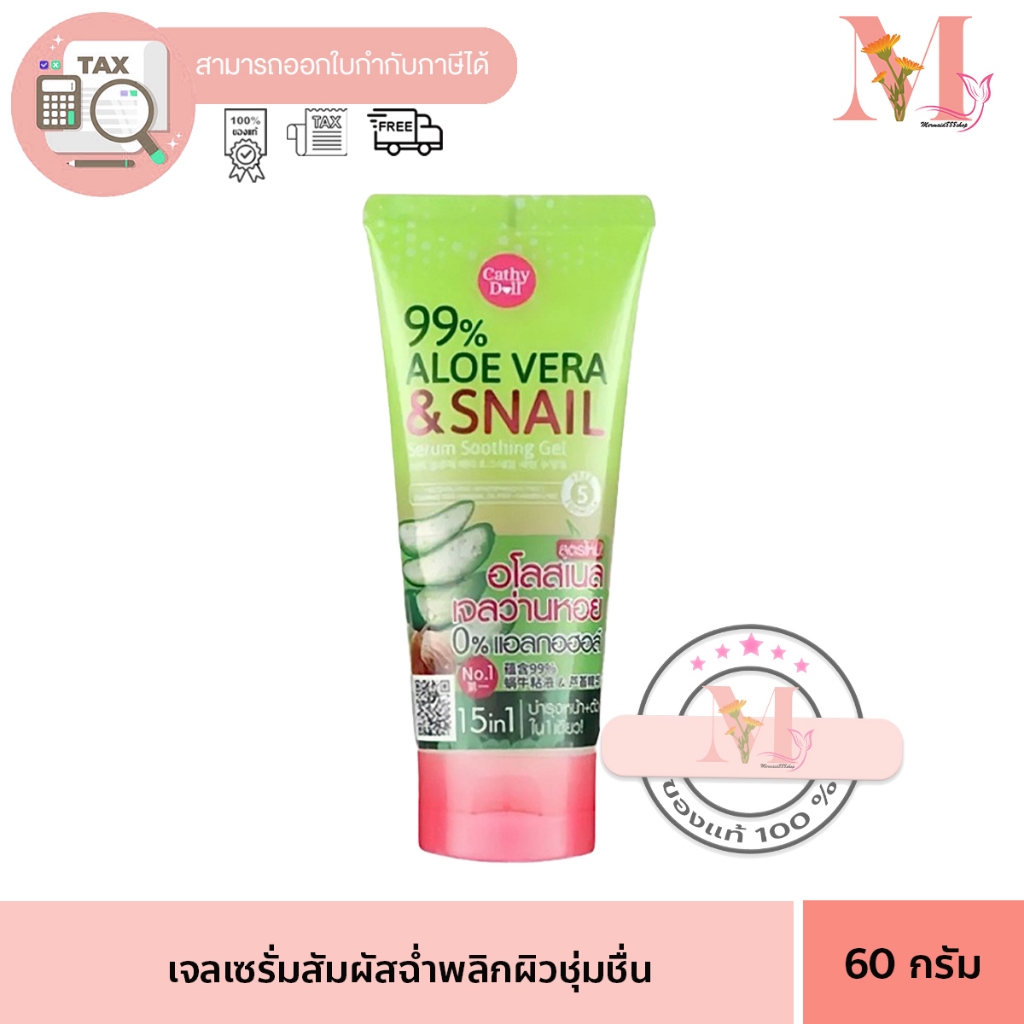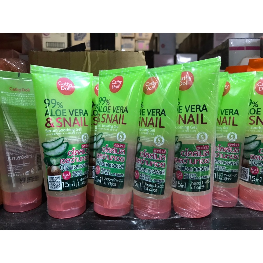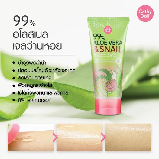 เจลว่านหางจระเข้ เจลว่านหอย อโลสเนล เคที่ดอลล์ Cathy Doll 99% Aloe Vera & Snail Serum Soothing Gel 60 กรัม