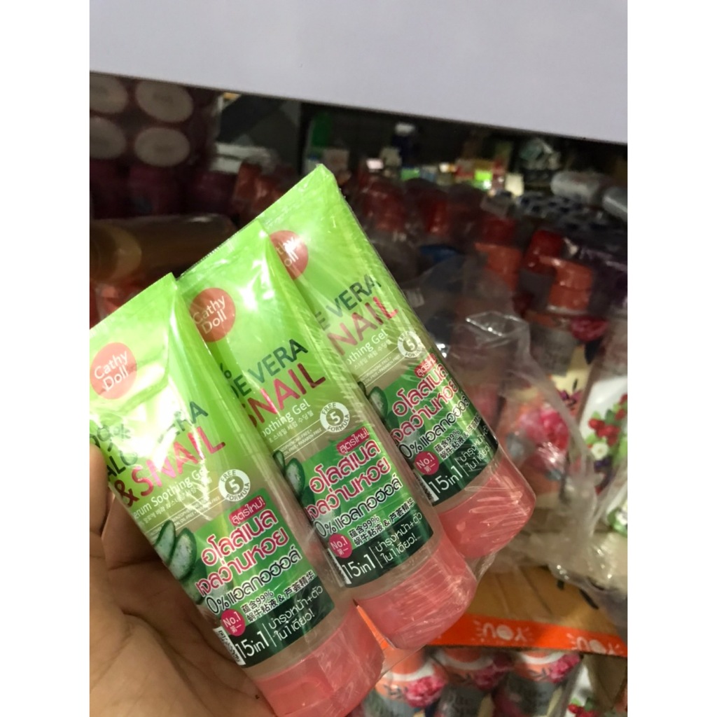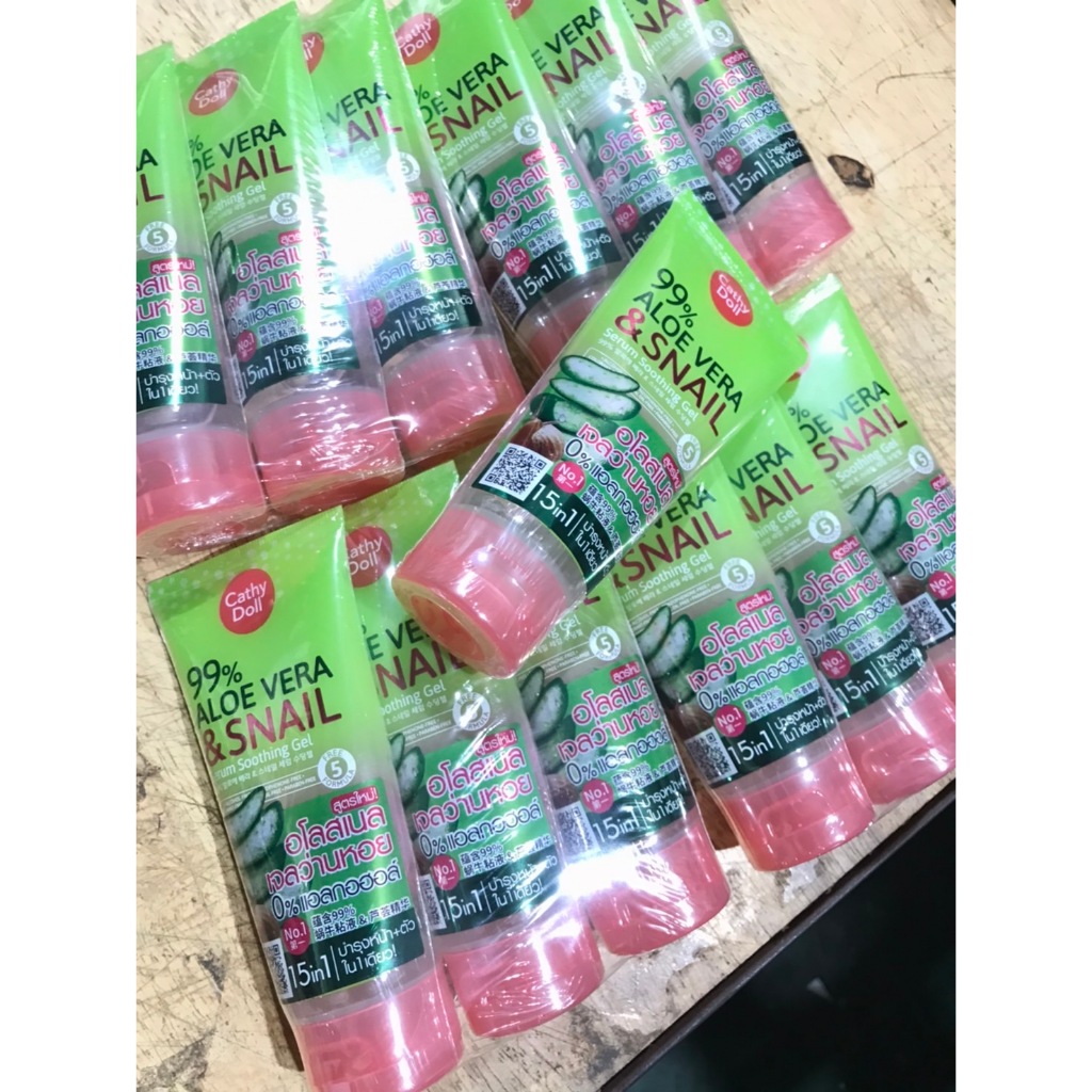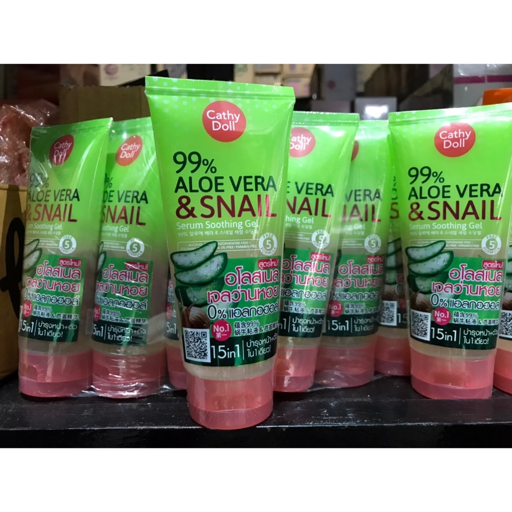 เจลว่านหางจระเข้ เจลว่านหอย อโลสเนล เคที่ดอลล์ Cathy Doll 99% Aloe Vera & Snail Serum Soothing Gel 60 กรัม