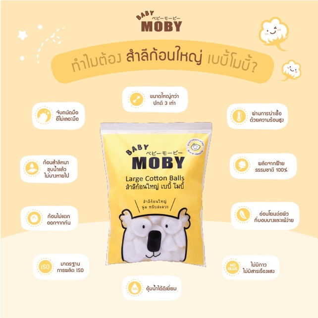 Baby Moby Cotton สำลีก้อน ขนาดมาตรฐาน 300 กรัม (1ห่อ)