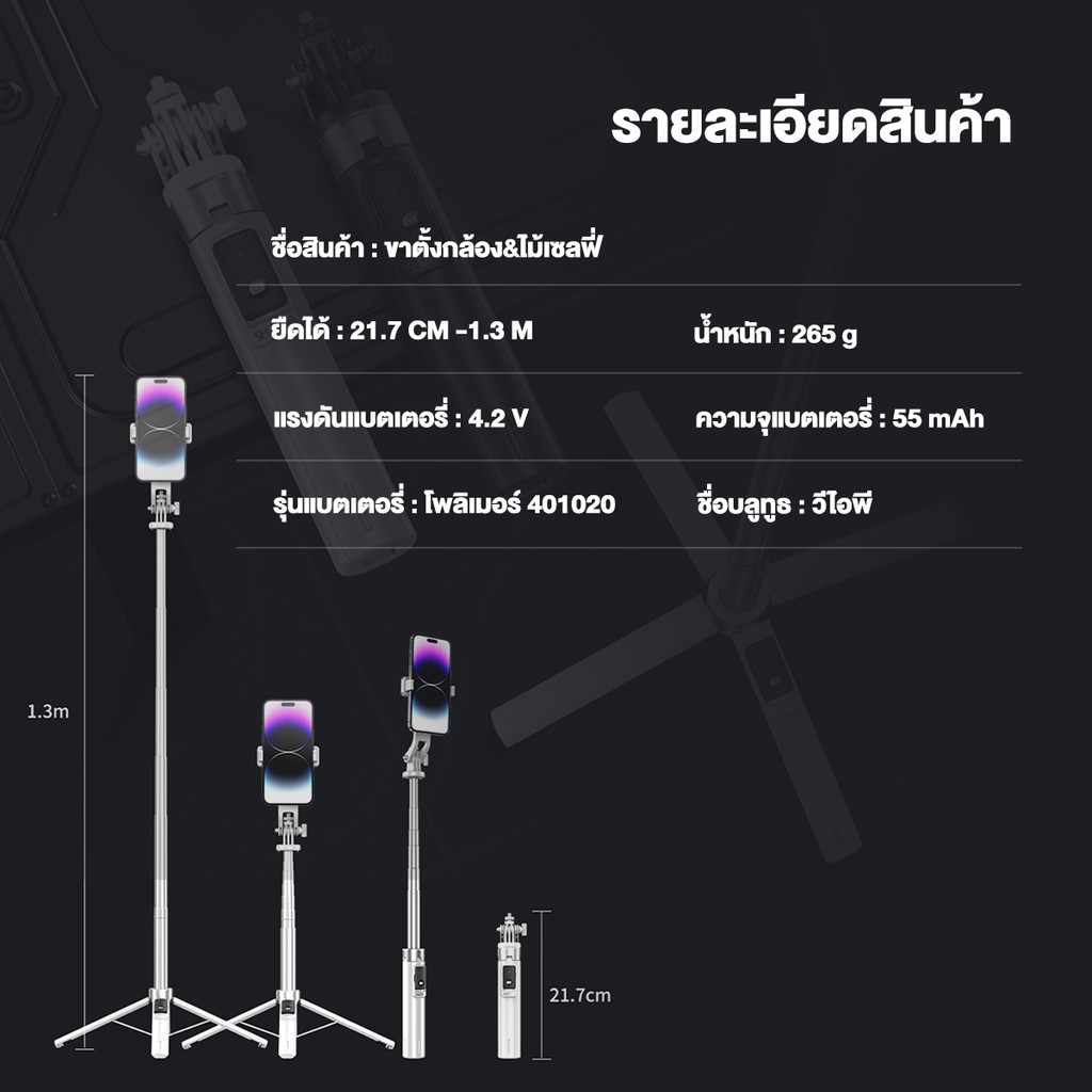 【Shizhua ของแท้】[ไม้เซลฟี่มีไฟ] ไม้เซลฟี่ 4-LEGGED TRIPOD ขาตั้งโทรศัพท์ ขาตั้งอเนกประสงค์ หมุนได้ พร้อมรีโมทบลูทูธ