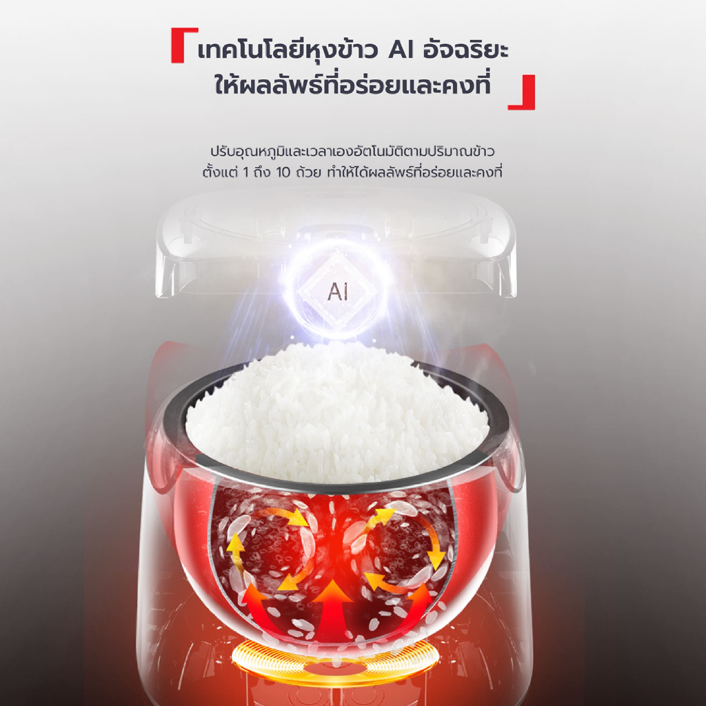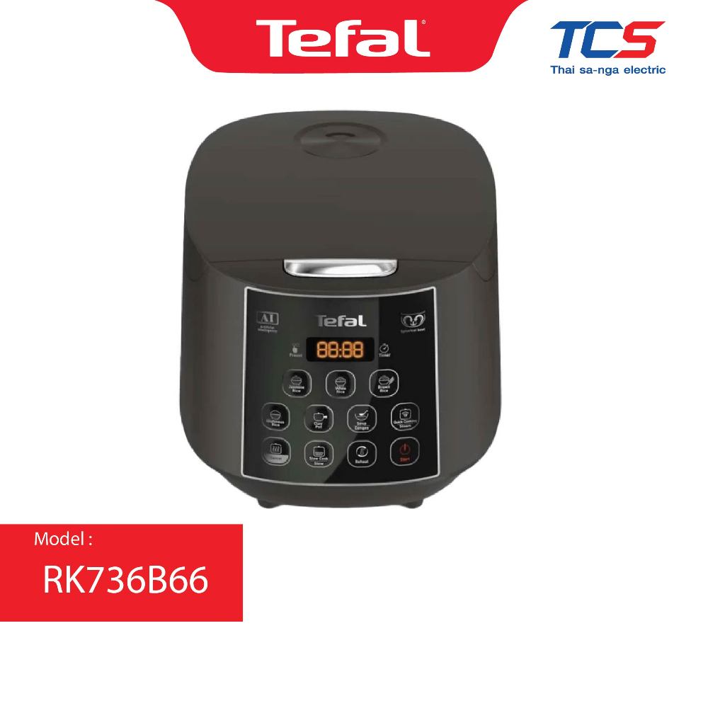 Tefal หม้อหุงข้าวดิจิตอล Easy Rice Plus 1.8 ล ิตร หม้อหนา 2 มม. รุ่น RK736B66