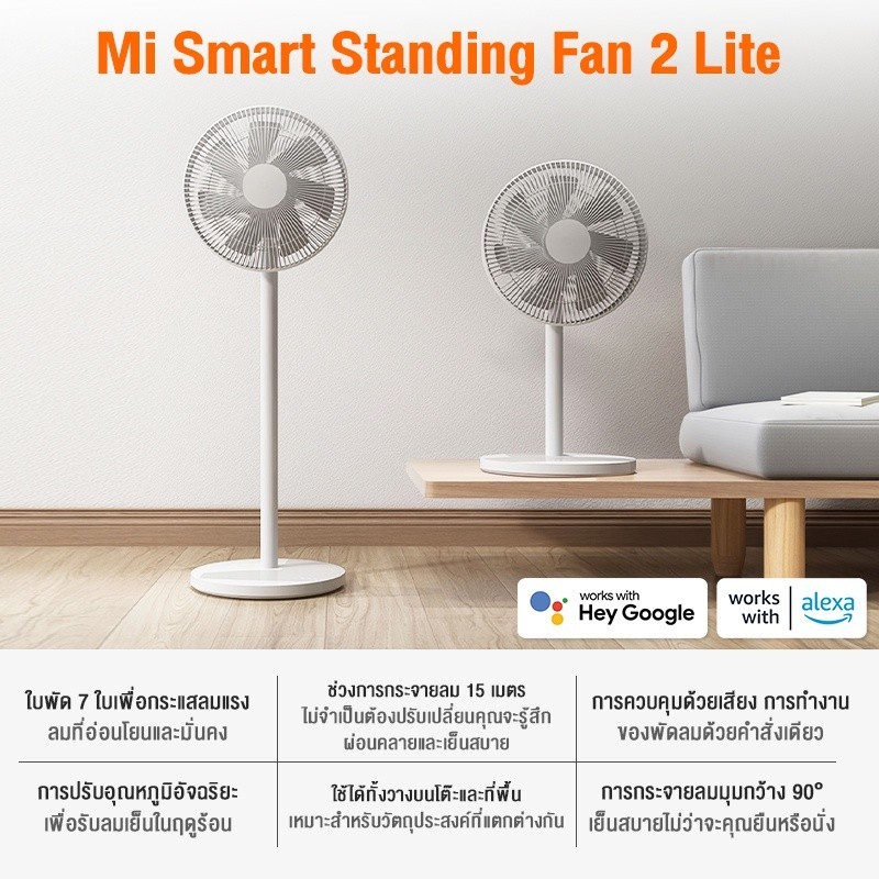 Xiaomi Mi Smart Standing Fan 2 Lite พัดลมตั้งพื้นอัจฉริยะ พัดลมตั้งโต๊ะ การกระจายลม 16 เมตร ประกันศูนย์ไทย 1 ปี