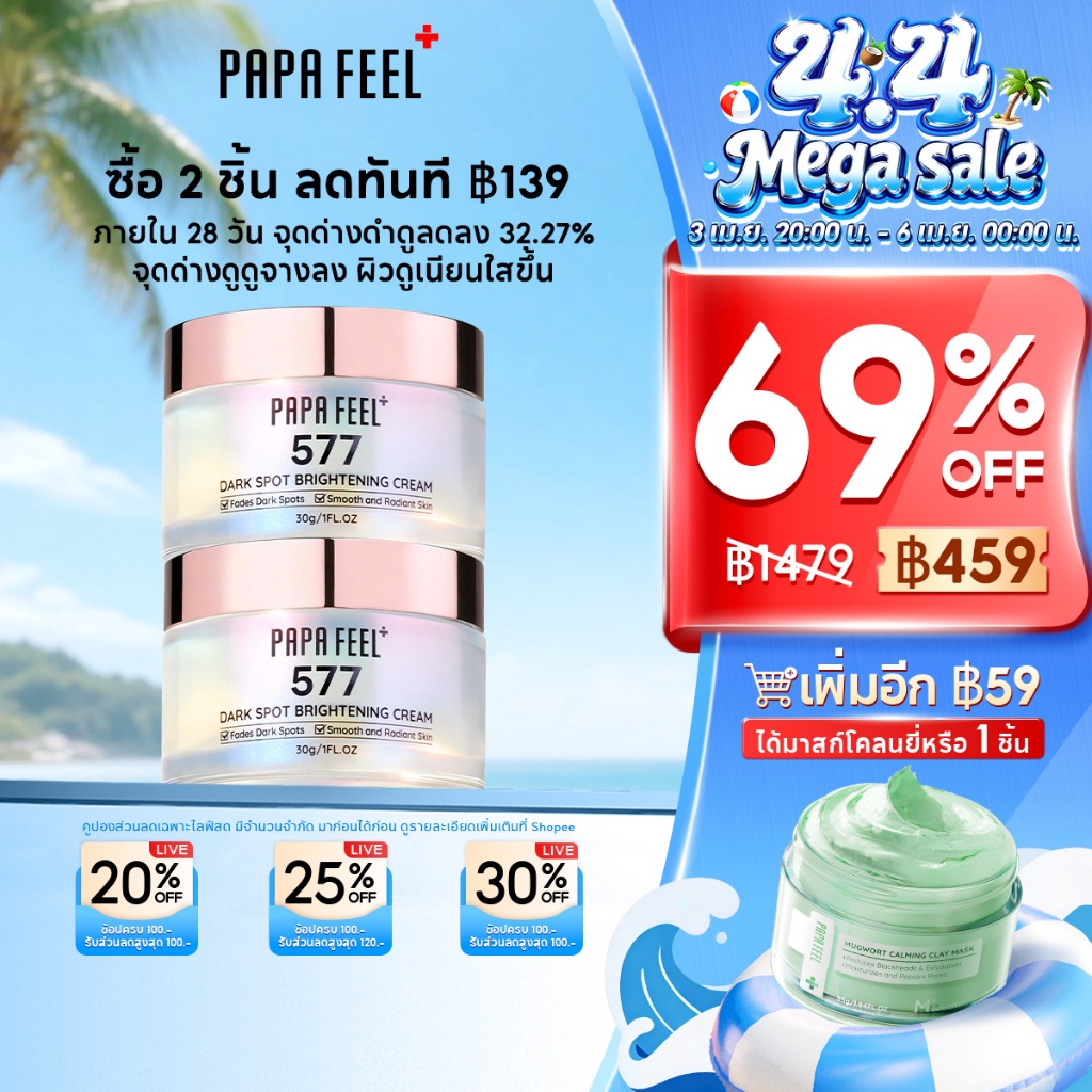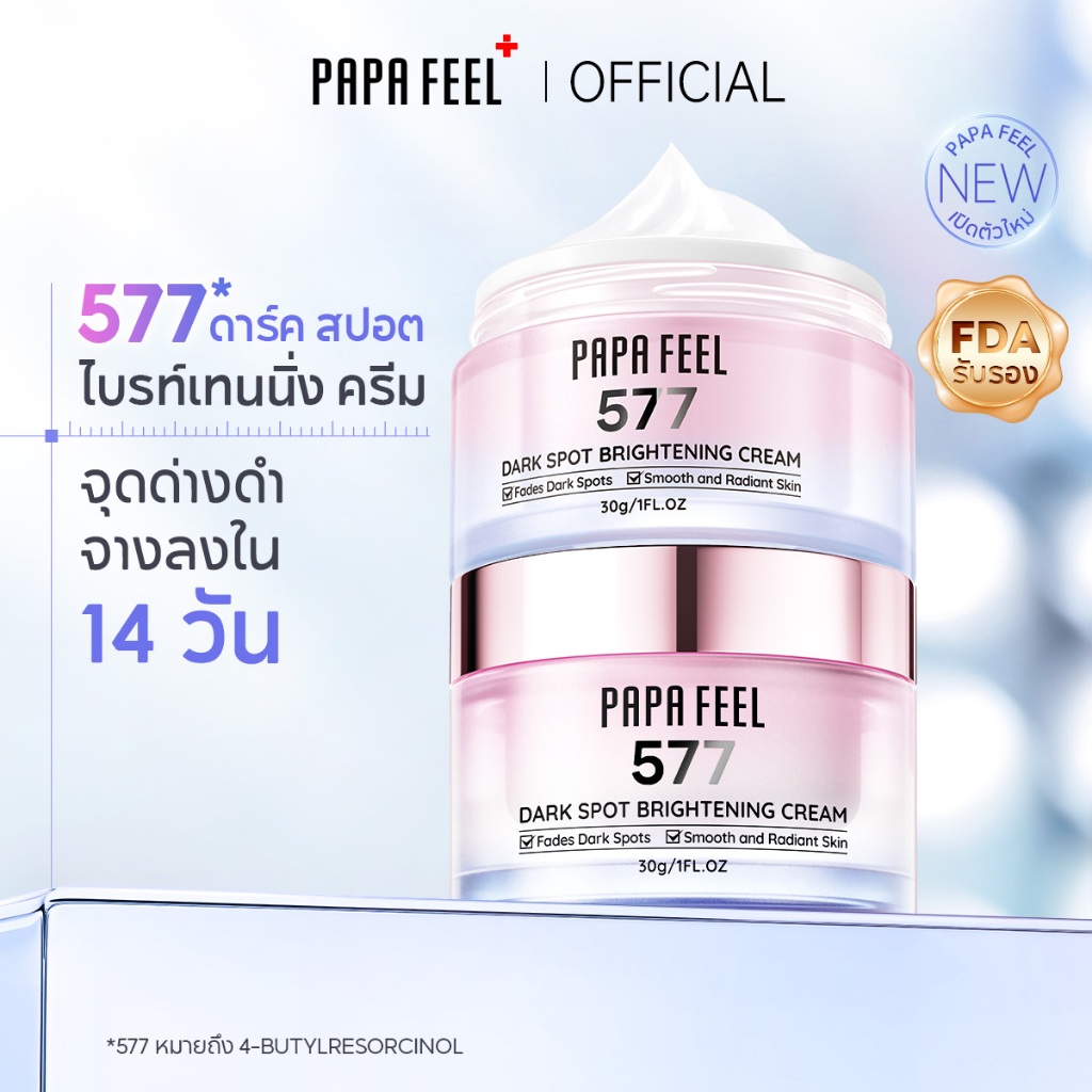 [แพ็คคู่] PAPA FEEL 577 ครีมลดจุดด่างดำ 30g | จุดด่างดำแลดูจางลงภายใน 28 วัน | ลดจุดด่างดำ | 377 เวอร์ชันอัปเกรด | ผิวกระจ่างใส | เพิ่มความชุ่มชื้น | สำหรับผิวแพ้ง่าย