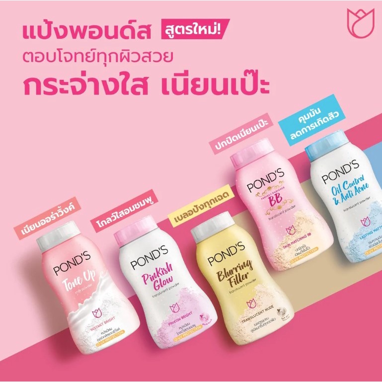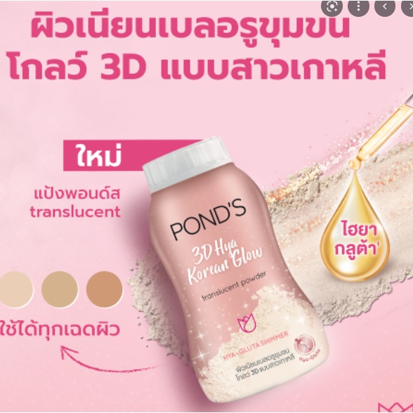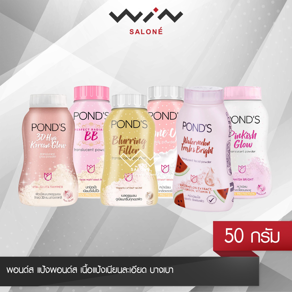 Pond's พอนด์ส แป้งพอนด์ส 50 กรัม เนื้อแป้งเนียนละเอียด บางเบา โปร่งแสง ใช้ได้กับทุกโทนสีผิว สีทอง/สีฟ้า/ชิมเมอร์