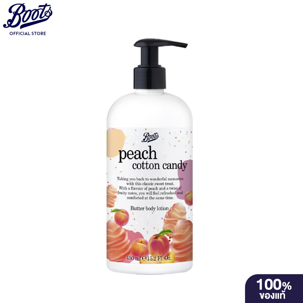 Boots Flavour Peach Cotton Candy Butter Body Lotion 450 ML บู๊ทส์ เฟเวอร์ พีช คอตตอน แคนดี้ บัตเตอร์ บอดี้ โลชั่น