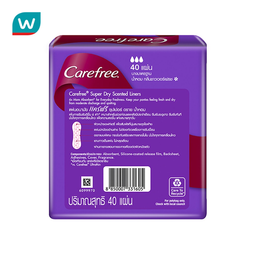 Carefree แคร์ฟรี ซุปเปอร์ ดราย รุ่นมีน้ำหอม 40 ชิ้น