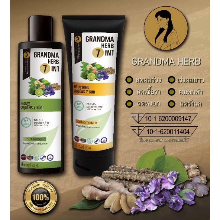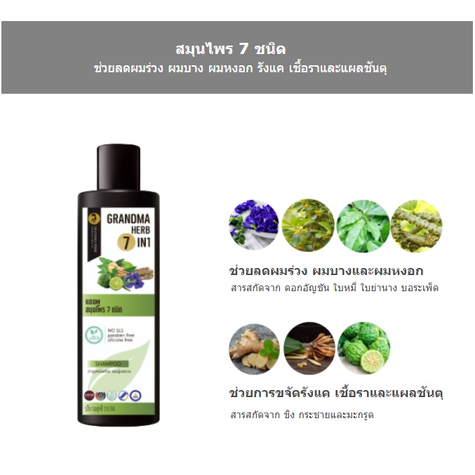 แชมพูสมุนไพรสูตรคุณยาย 7in1 ปลูกผมดก แก้หัวล้าน กระตุ้นการเกิดผมใหม่ เร่งผมยาว ผมดกดำ ลดผมร่วงผมบาง รังแค เชื้อรา