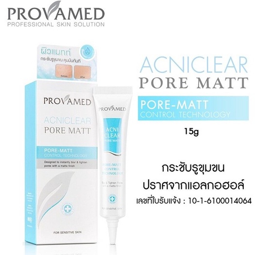 Provamed โปรวาเมด Acniclear Pore Matt โปรวาเมด แอคนิเคลียร์ พอร์ แมท 15 กรัม