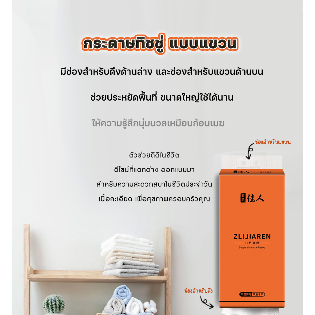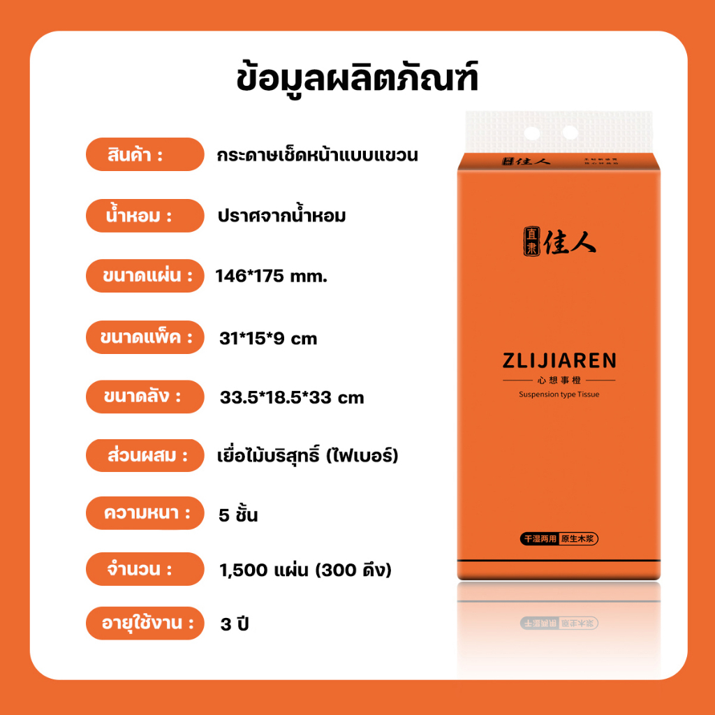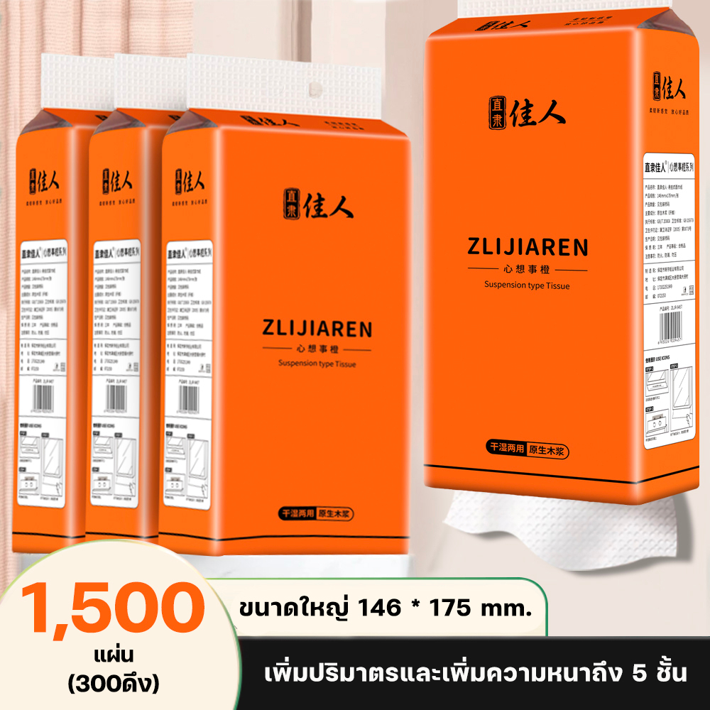 [4 แพ็ค] ทิชชู่หนา 5 ชั้นแบบดึงแขวนได้ แพ็คละ 1500 แผ่น กระดาษทิชชู่ ห่อส้ม สัมผัสนุ่มละมุน ไม่เป็นขุย อ่อนโยน