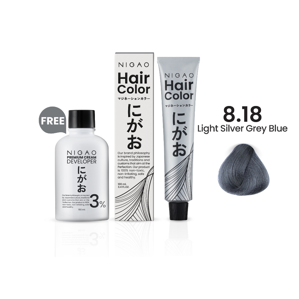 [ฟรี Developer] NIGAO Hair Color Silver Grey 8.18 | นิกาโอะ ครีมเปลี่ยนสีผม สีเทา เหลือบประกายน้ำเงิน 100 mL
