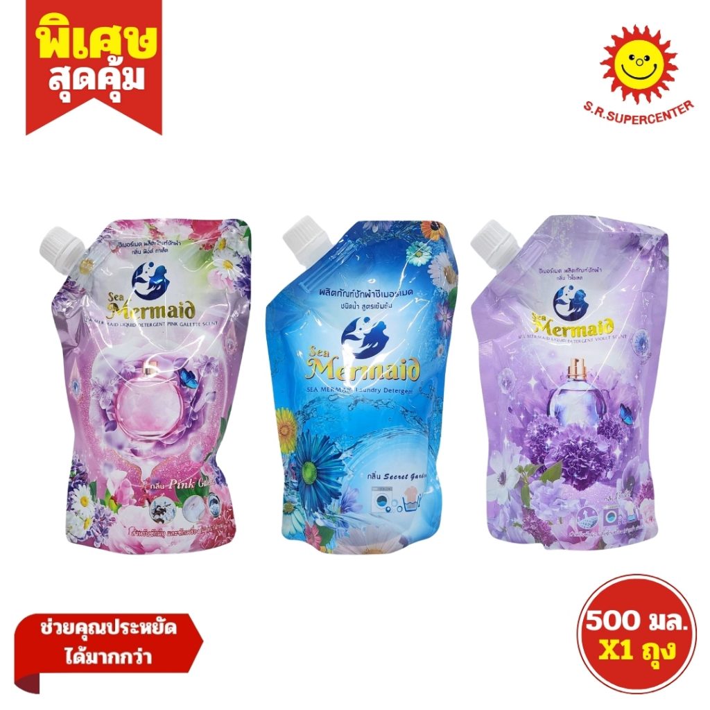 [ 1ถุง ] Sea Mermaid ซี เมอร์เมด ผลิตภัณฑ์ซักผ้าชนิดน้ำ สูตรเข้มข้น ขนาด 500 มล. (1ถุง) คละสูตร
