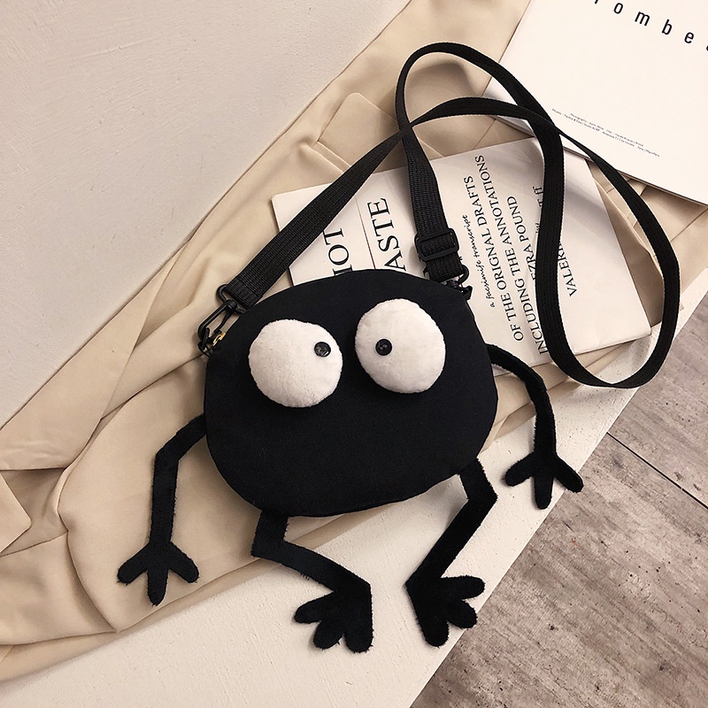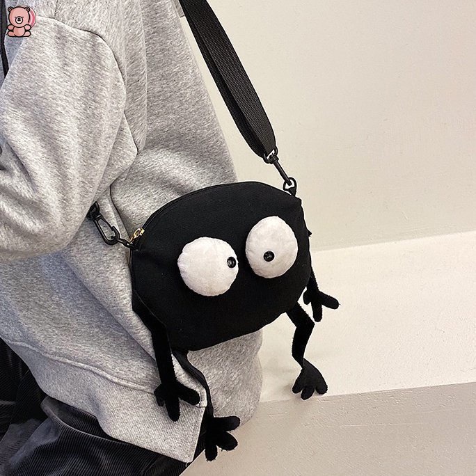 ใหม่ กระเป๋าสะพายไหล่ กระเป๋าถือ ผ้าแคนวาส ลายการ์ตูนมอนสเตอร์ตาโต ขนาดเล็ก สีดํา สําหรับสตรี ผู้ชาย ทุกเพศ YUE