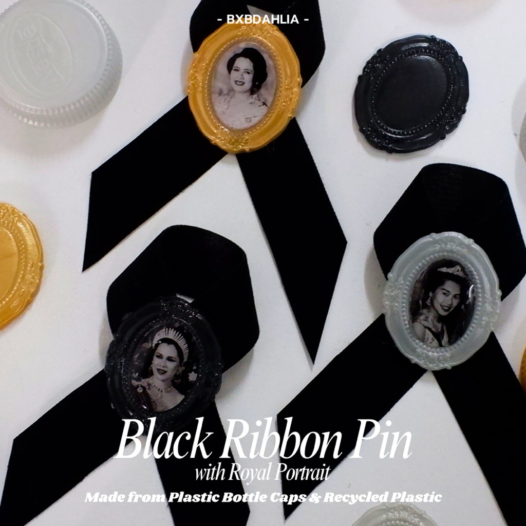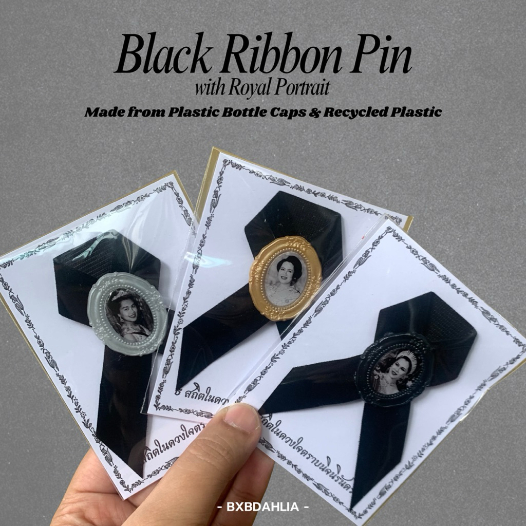 เข็มกลัดโบว์ไว้อาลัย (ส่งภายใน 1-3 วัน)จากฝาขวดรีไซเคิล bxbdahlia