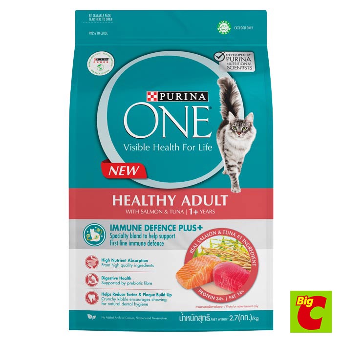 เพียวริน่า วัน เฮลตี้ อะเดาท์ อาหารแมวชนิดเม็ด สูตรผสมปลาแซลมอนและทูน่า 2.7 กก.