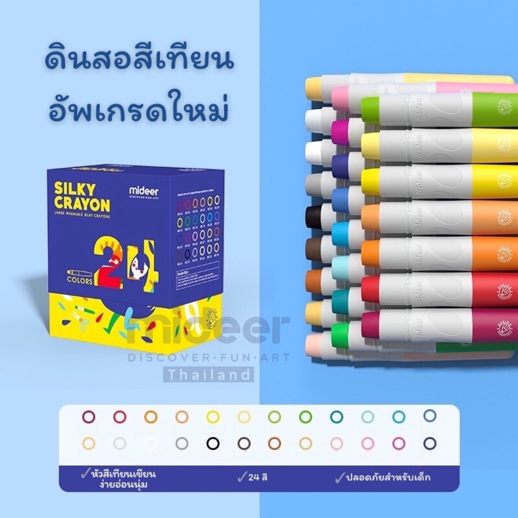 Mideer มิเดียร์ Sliky Crayon สีเทียนขนาดใหญ่สำหรับเด็ก 12-24 สี MD4066- MD4067