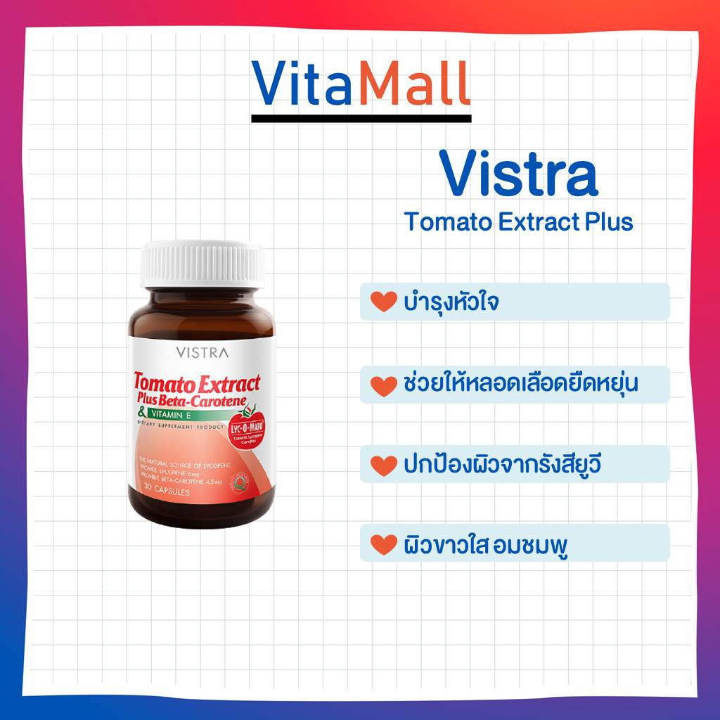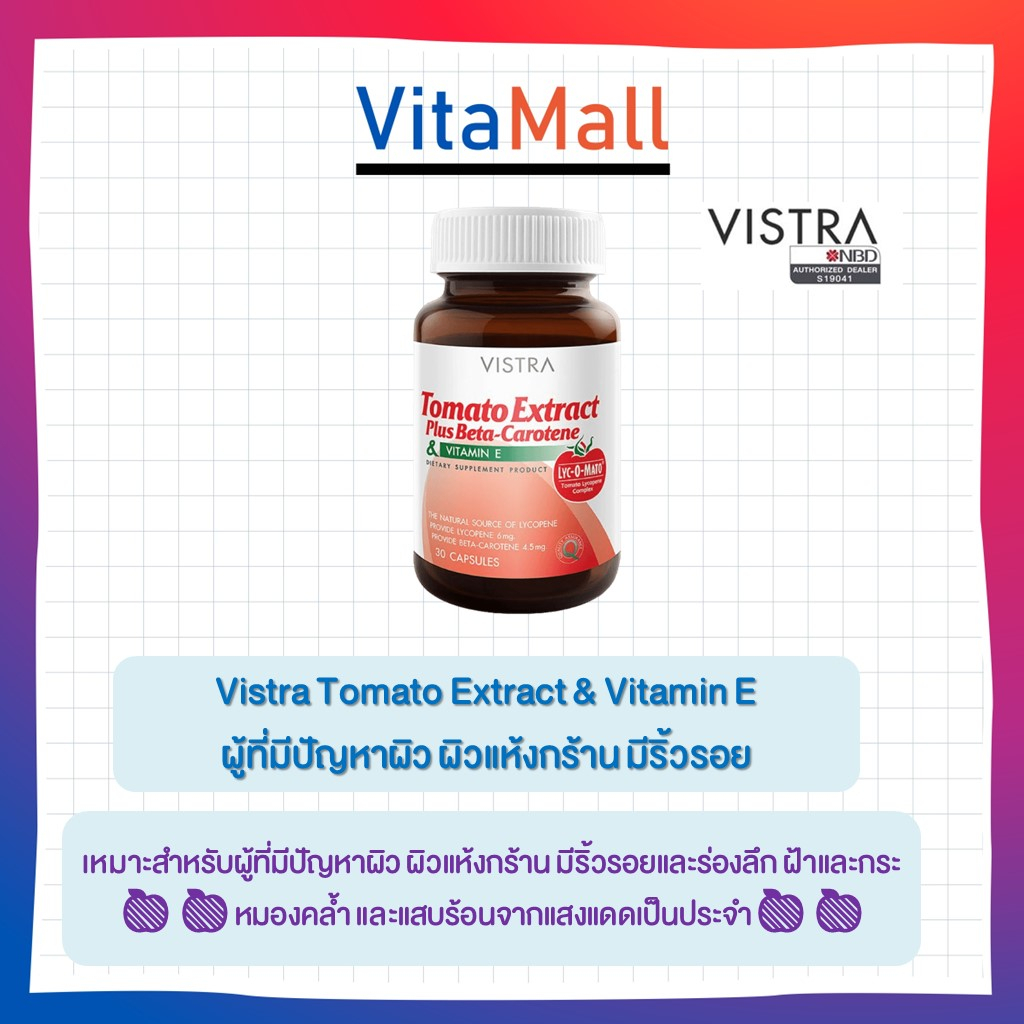 Vistra Tomato Extract & Vitamin E ผิวแห้งกร้าน มีริ้วรอยและร่องลึก ฝ้าและกระหมองคล้ำ
