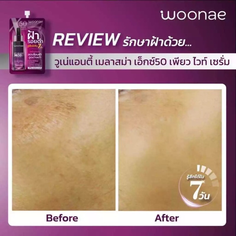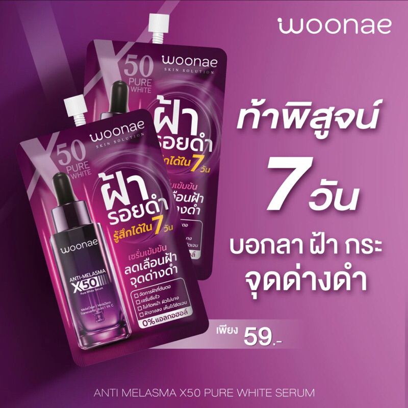 [3ซอง] Woonae วูเน่ แอนตี้ เมลาสม่า เอ็กซ์50 เพียว ไวท์ เซรั่ม 10กรัม