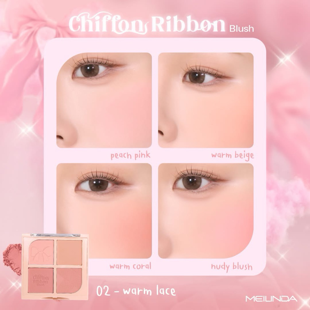 Meilinda Chiffon Ribbon Blush บลัชออน 4สี 4 ช่อง เมลินดา ชิฟฟ่อน ริบบ้อน บลัช MC5102