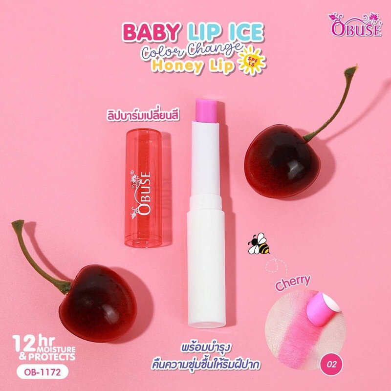 Obuse OB-1172 baby lip ice ลิปบาล์มเปลี่ยนสี หอมกลิ่นผลไม้ บำรุงริมฝีปากให้ดูมันวาว อวบอิ่ม