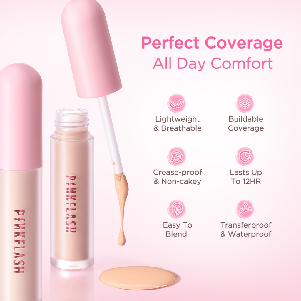 PINKFLASH Skinfit คอนซีลเลอร์ Brightening น้ําหนักเบา Blendable Buildable Coverage Non-cakey Moisturizing ติดทนนานกันน้ํา