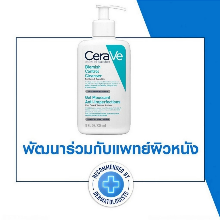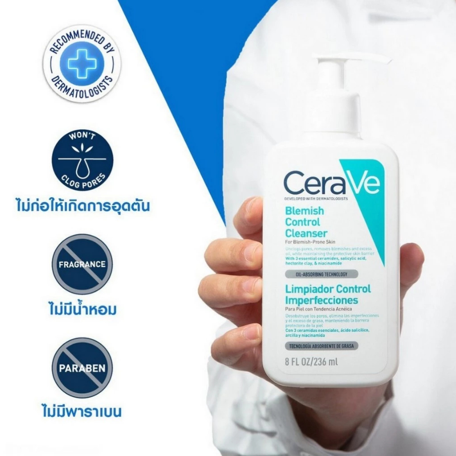 CeraVe Blemish Control Cleanser ผลิตภัณฑ์ทำความสะอาด ช่วยลดปัญหาสิว ลดการอุดตันบนผิว (236 มล.)