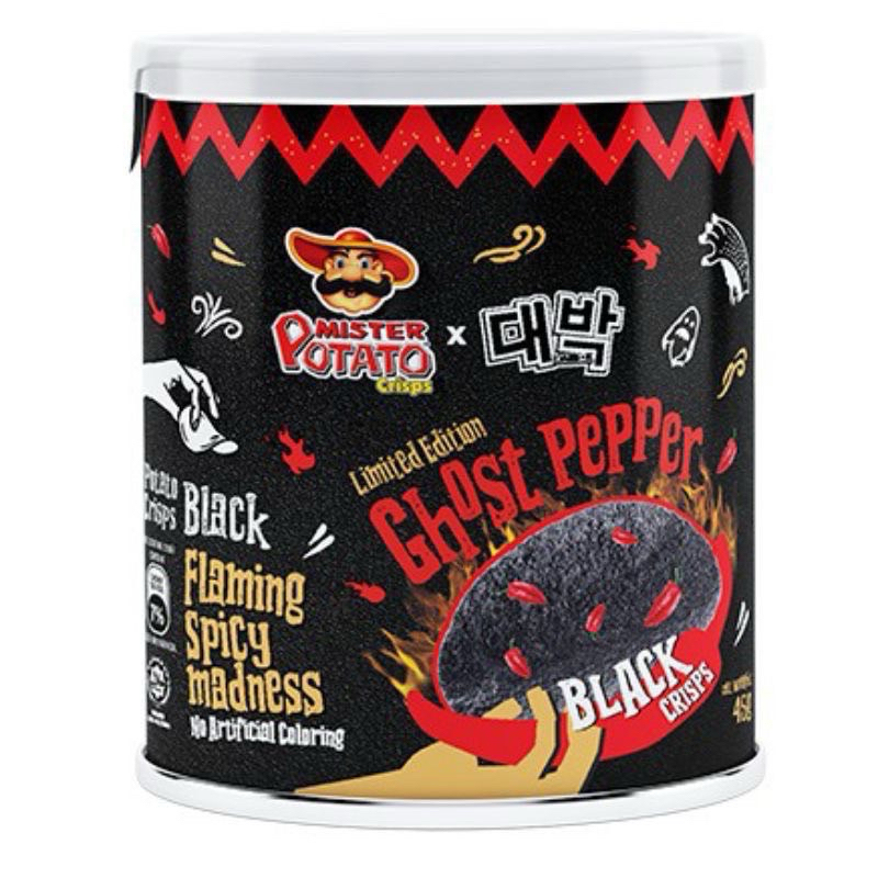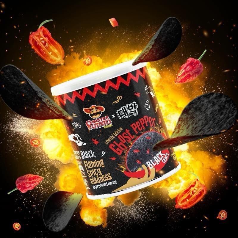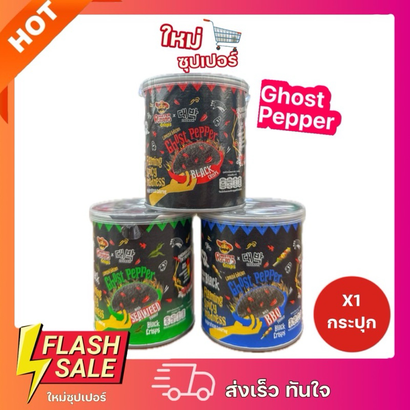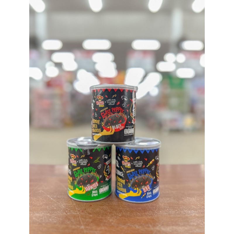 [X1กระปุก] พร้อมส่ง มันฝรั่งแผ่นทอดกรอบรสพริก Ghost Pepper Black Crisps 3 รสชาติ ขนาด 45g.