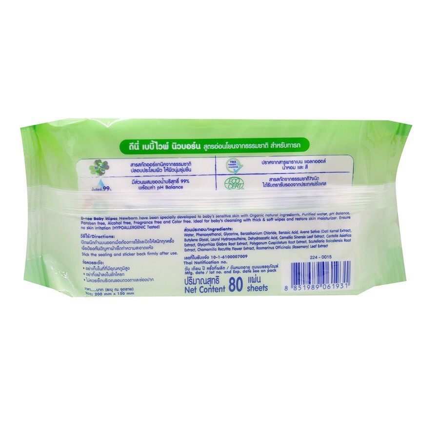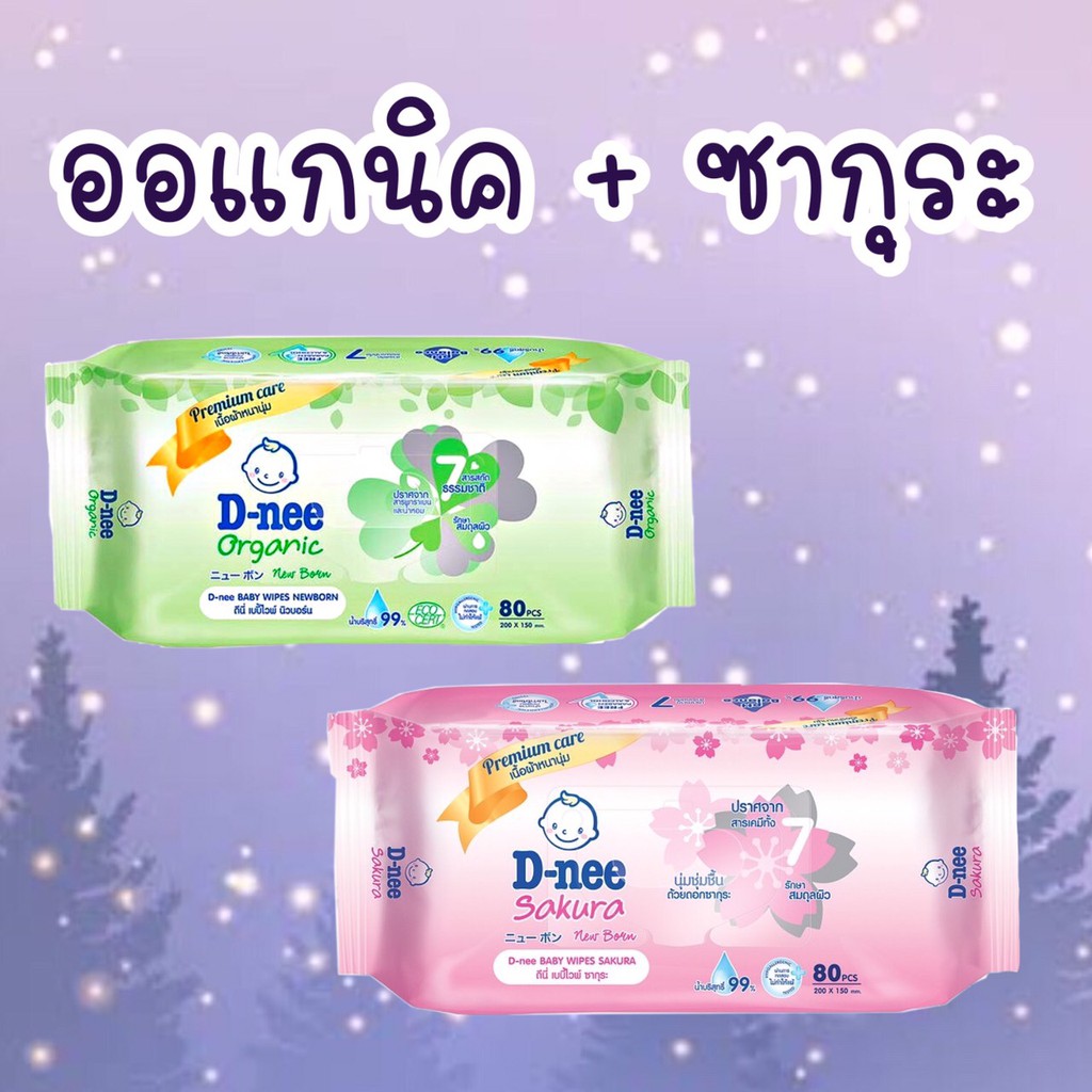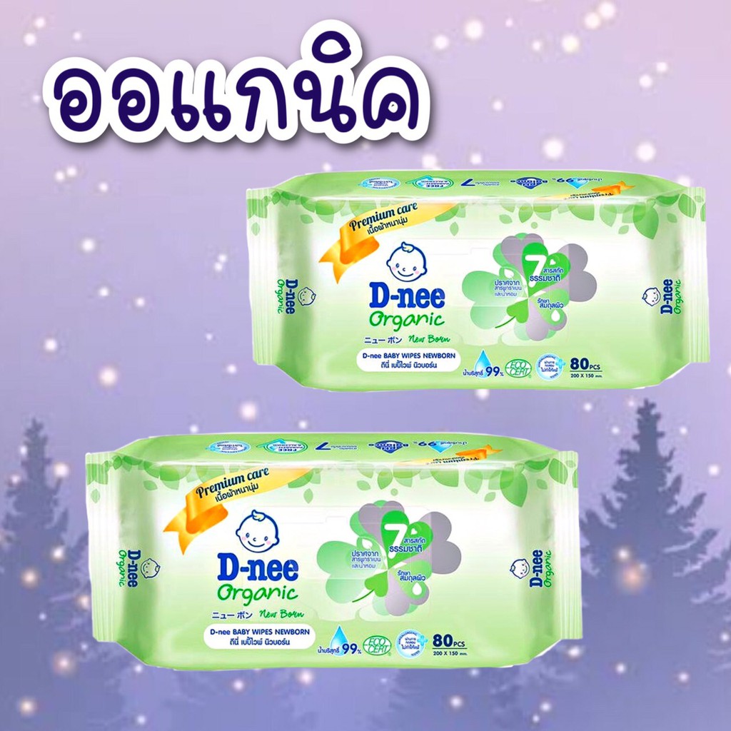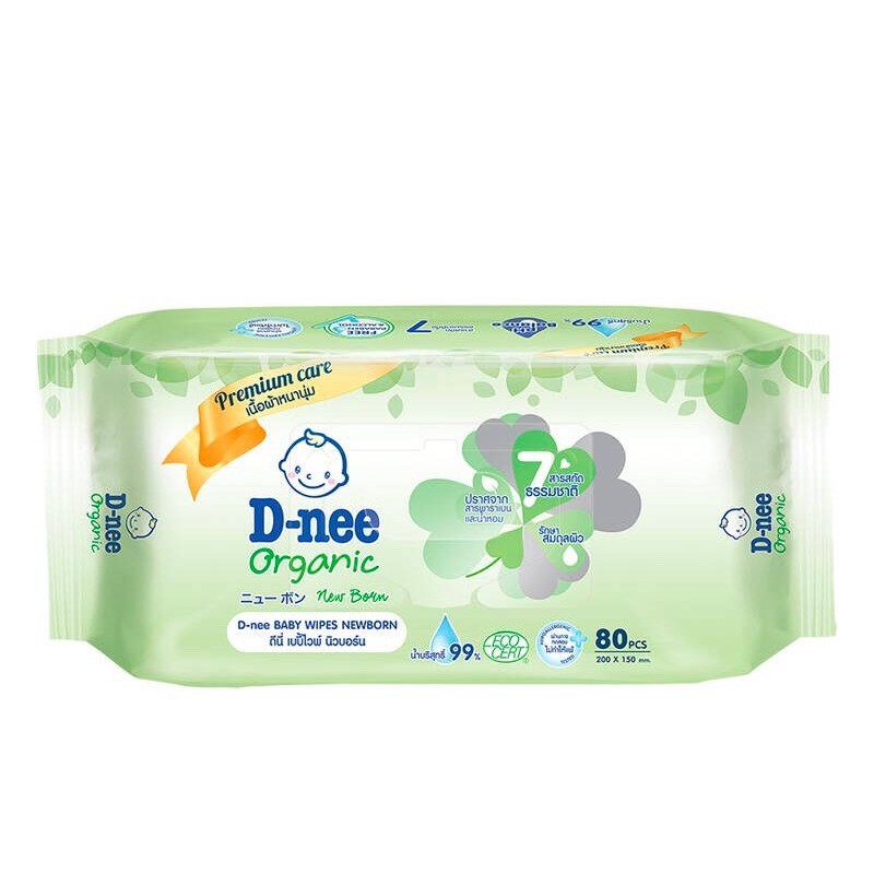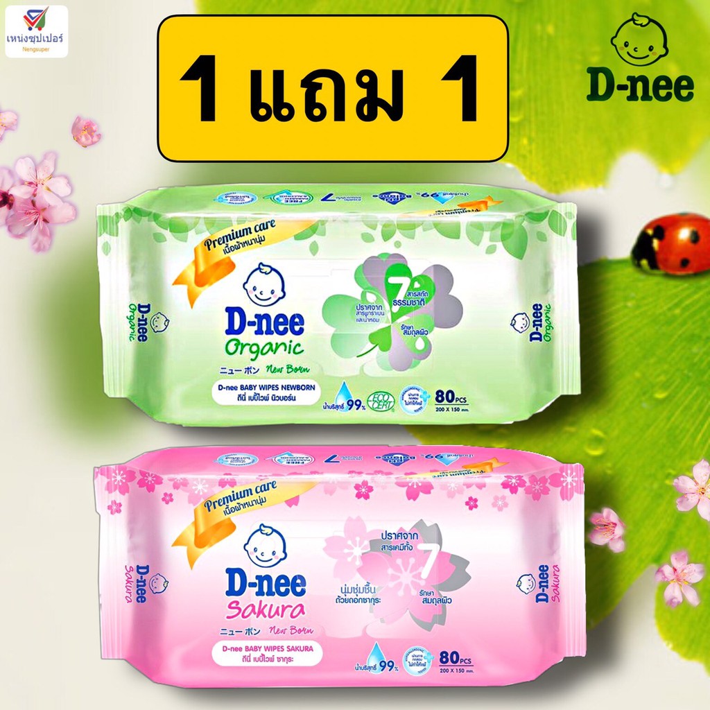 (ซื้อ1แถม1) D-nee ดีนี่ แผ่นเช็ดทำความสะอาด ปราศจากสารเคมี สำหรับทารก มี 2 สูตร 80 แผ่น คละสีได้