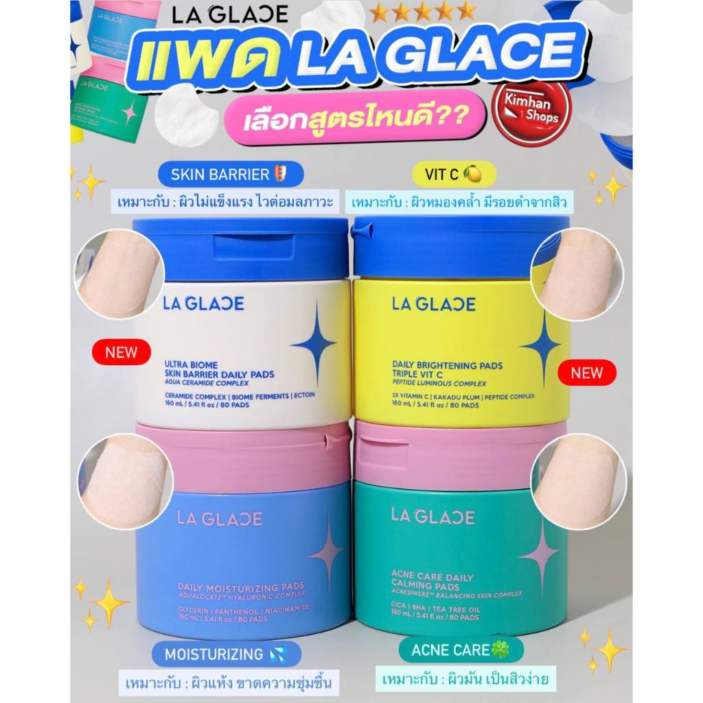 La Glace Daily Toner Pads | 4 สูตรเติมความชุ่มชื้น & สูตรผิวเป็นสิว🌟